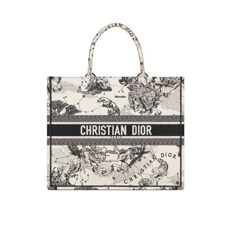 Large Dior Book Tote Latte Toile de Jouy Zodiac Embroidery – DB039