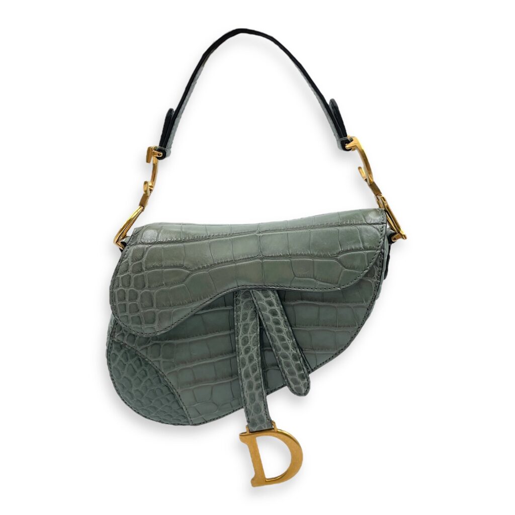 Saddle with Long strap Mini Green Shoulder Bag in Alligator, Gold hardware