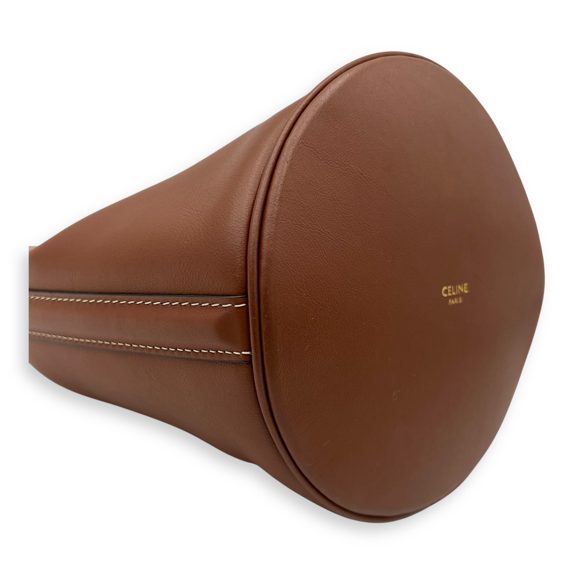 16 Teen Brown Bucket Bag in Calfskin, Gold hardware