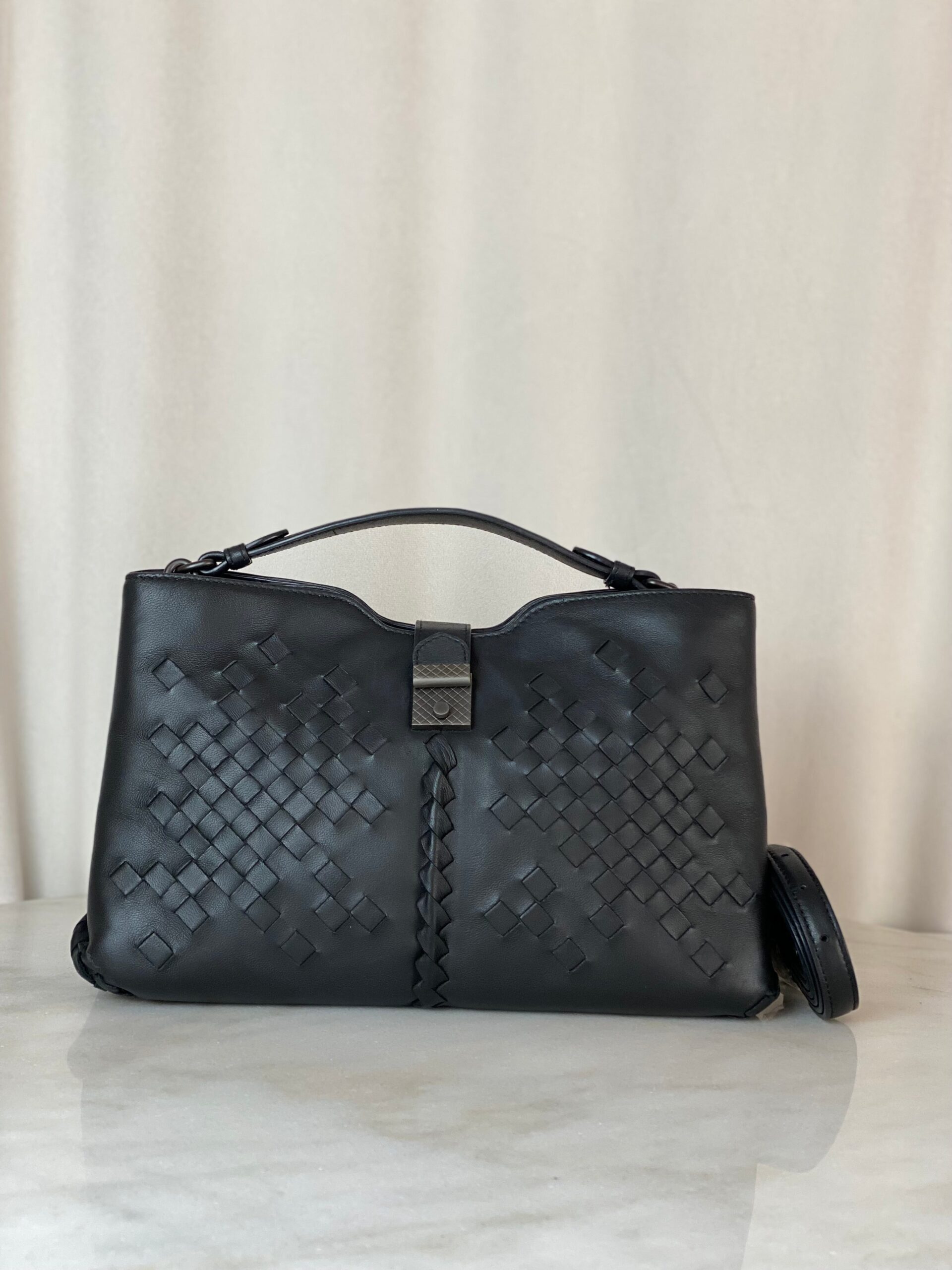 Bottega Veneta Black Napoli Tote Bag W/ Strap
