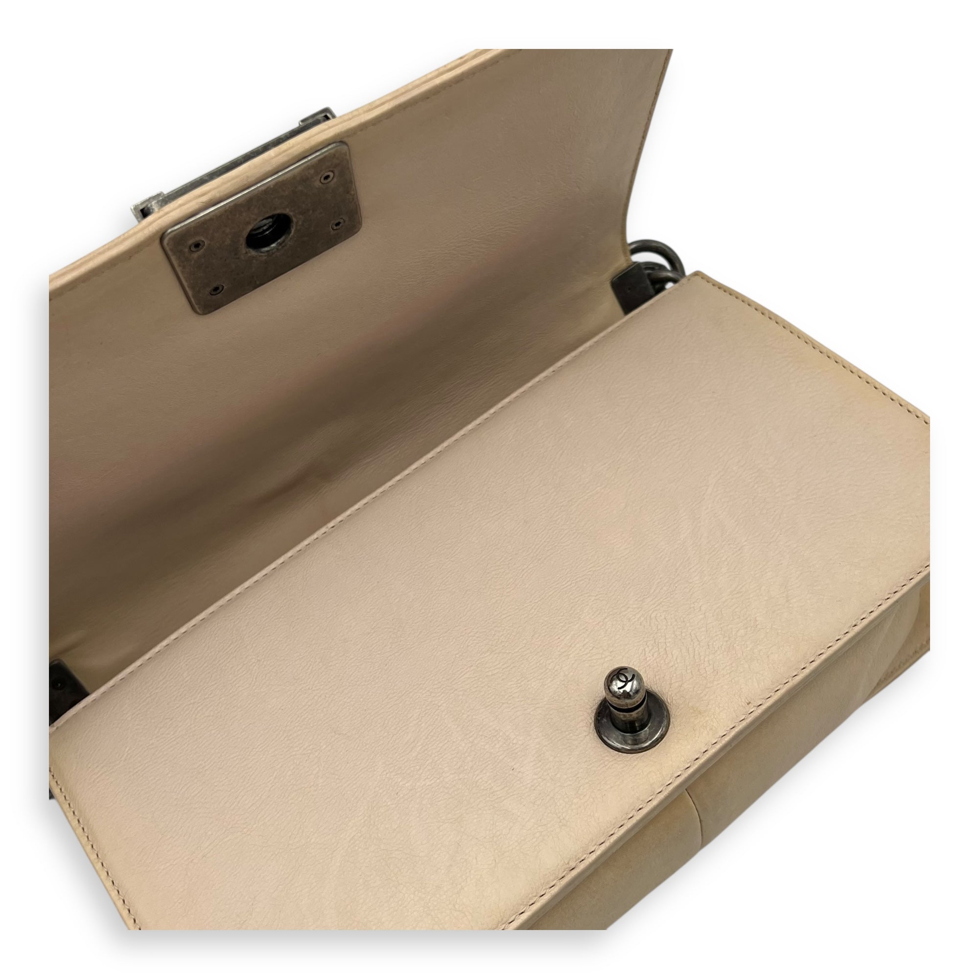 Be the first to review “Boy Crossbody Bag Medium Beige in Calfskin, Silver hardware”