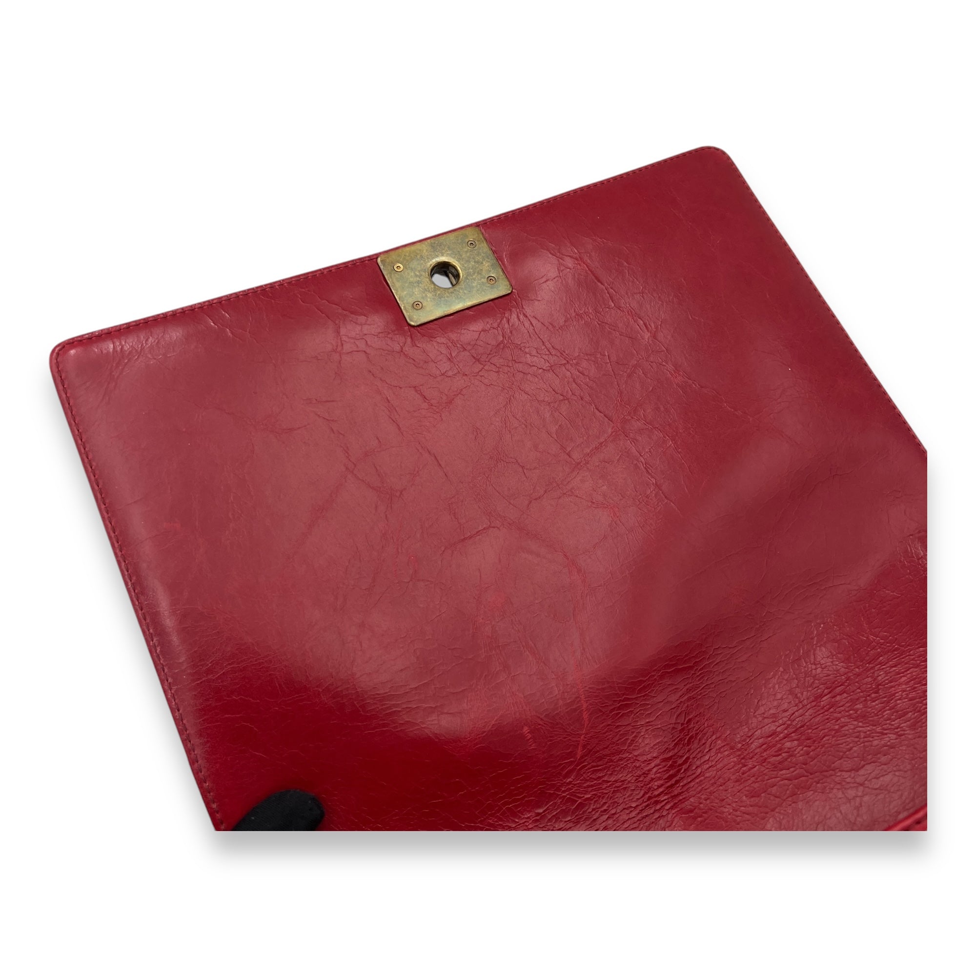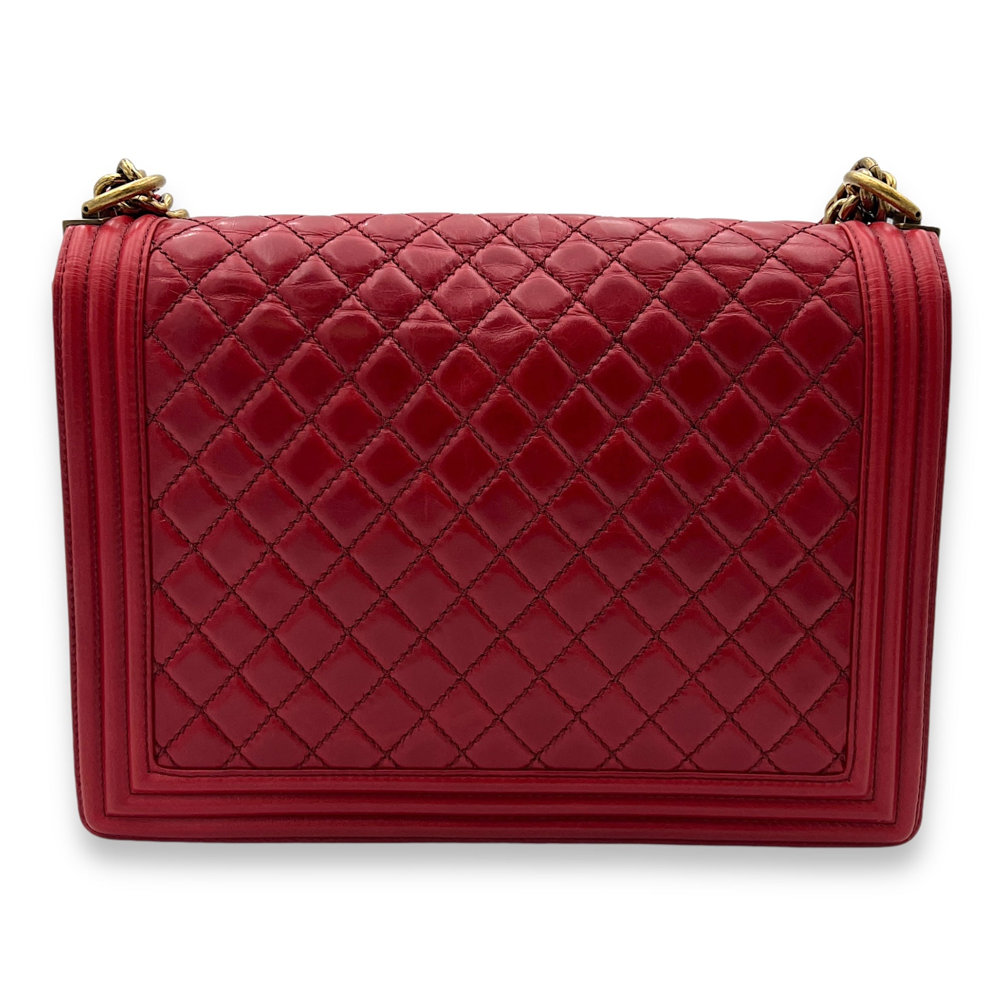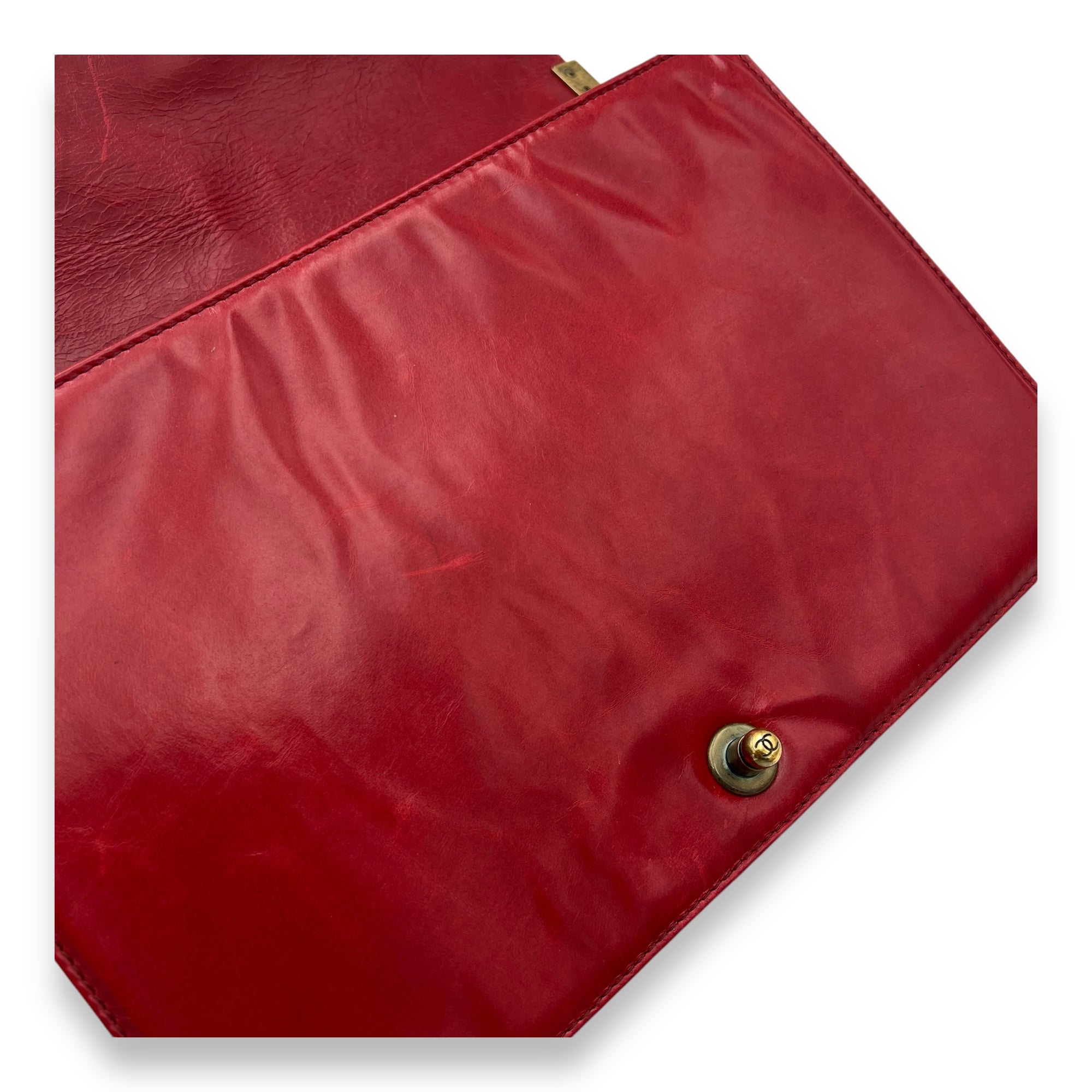 Boy Shoulder Bag Large Red in Calfskin, Gold hardware