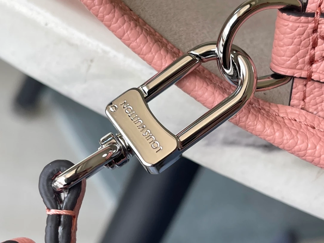 The Buci Epi Leather Bag, a delightful accessory that exudes a summery vibe with its pastel-colored Epi leather and captivating embossed texture. Measuring at 24.5 x 15.5 x 9 cm, this cross-body bag boasts a supple shape accentuated by its rounded corners, smooth leather trim, and side gussets. Adding a touch of sophistication, the front flap proudly displays oversized LV initials in tone-on-tone resin. The Buci bag offers versatility with its removable and adjustable strap, allowing for comfortable on-the-shoulder carry. Elevate your style with this charming and practical piece.