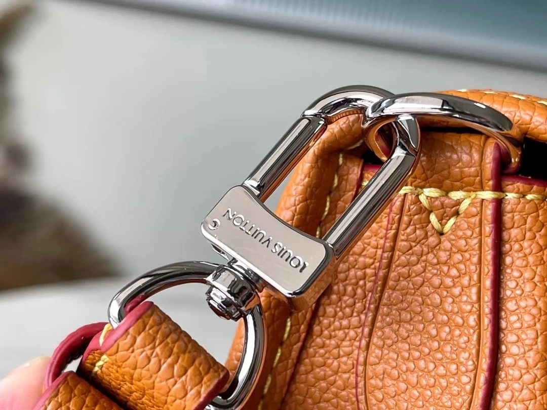 The Buci Epi Leather Bag, a delightful accessory that exudes a summery vibe with its pastel-colored Epi leather and captivating embossed texture. Measuring at 24.5 x 15.5 x 9 cm, this cross-body bag boasts a supple shape accentuated by its rounded corners, smooth leather trim, and side gussets. Adding a touch of sophistication, the front flap proudly displays oversized LV initials in tone-on-tone resin. The Buci bag offers versatility with its removable and adjustable strap, allowing for comfortable on-the-shoulder carry. Elevate your style with this charming and practical piece.