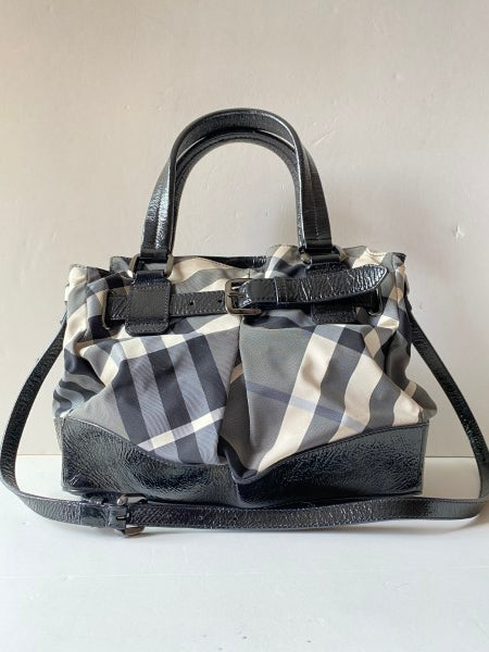 • Material: Black/White Check Nylon with Black Patent Leather Trim