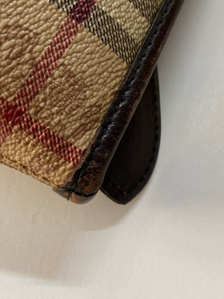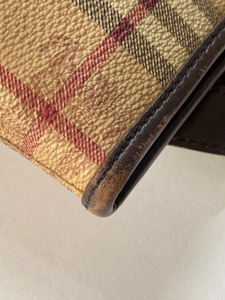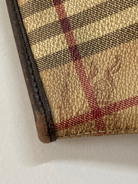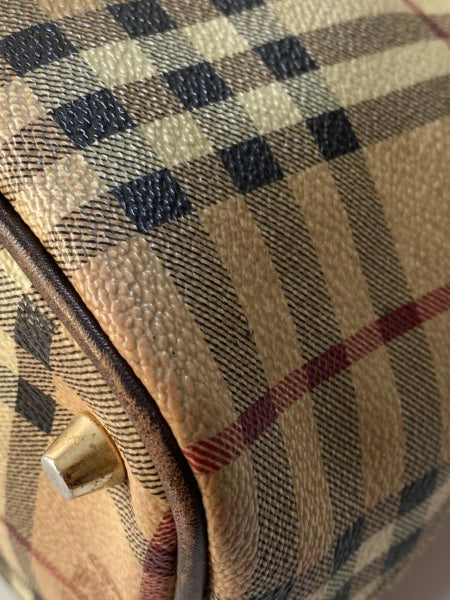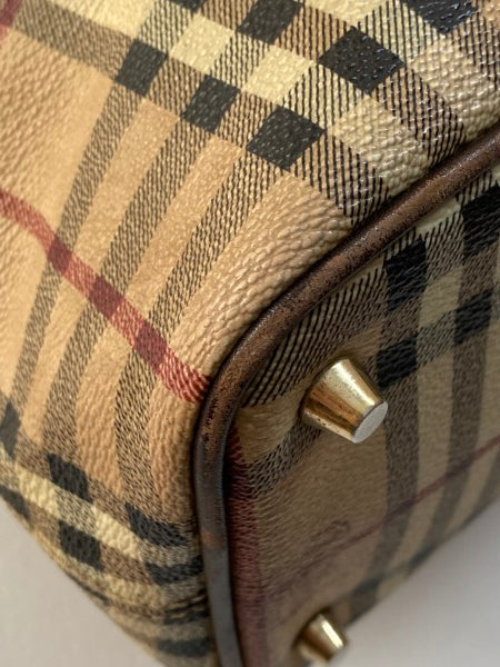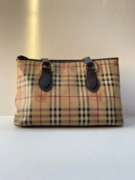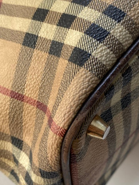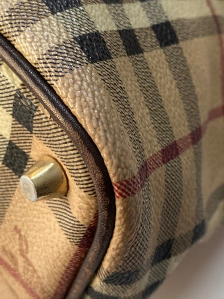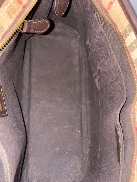 • Material: Beige Haymarket Check Coated Canvas with Brown Leather Trim