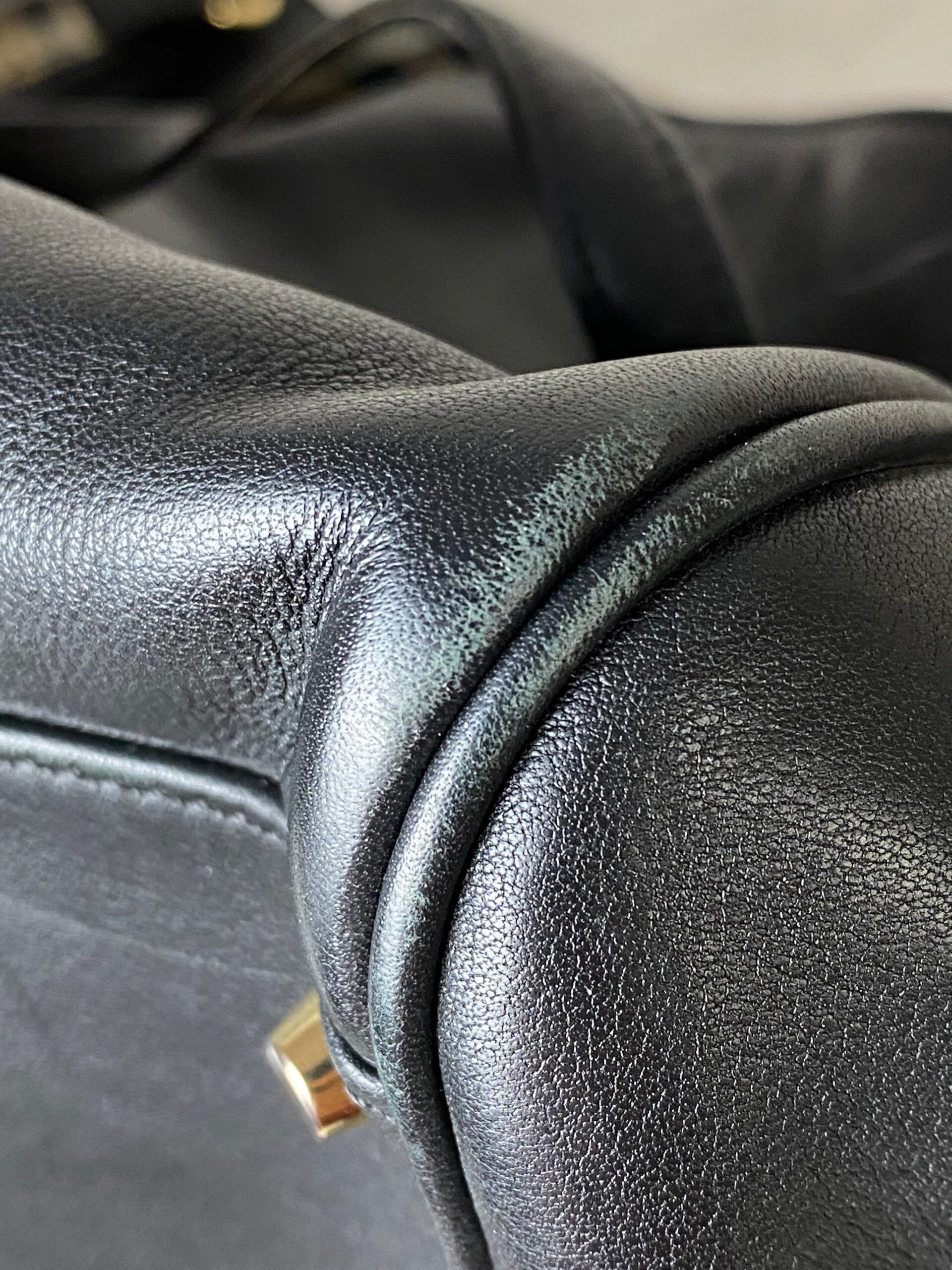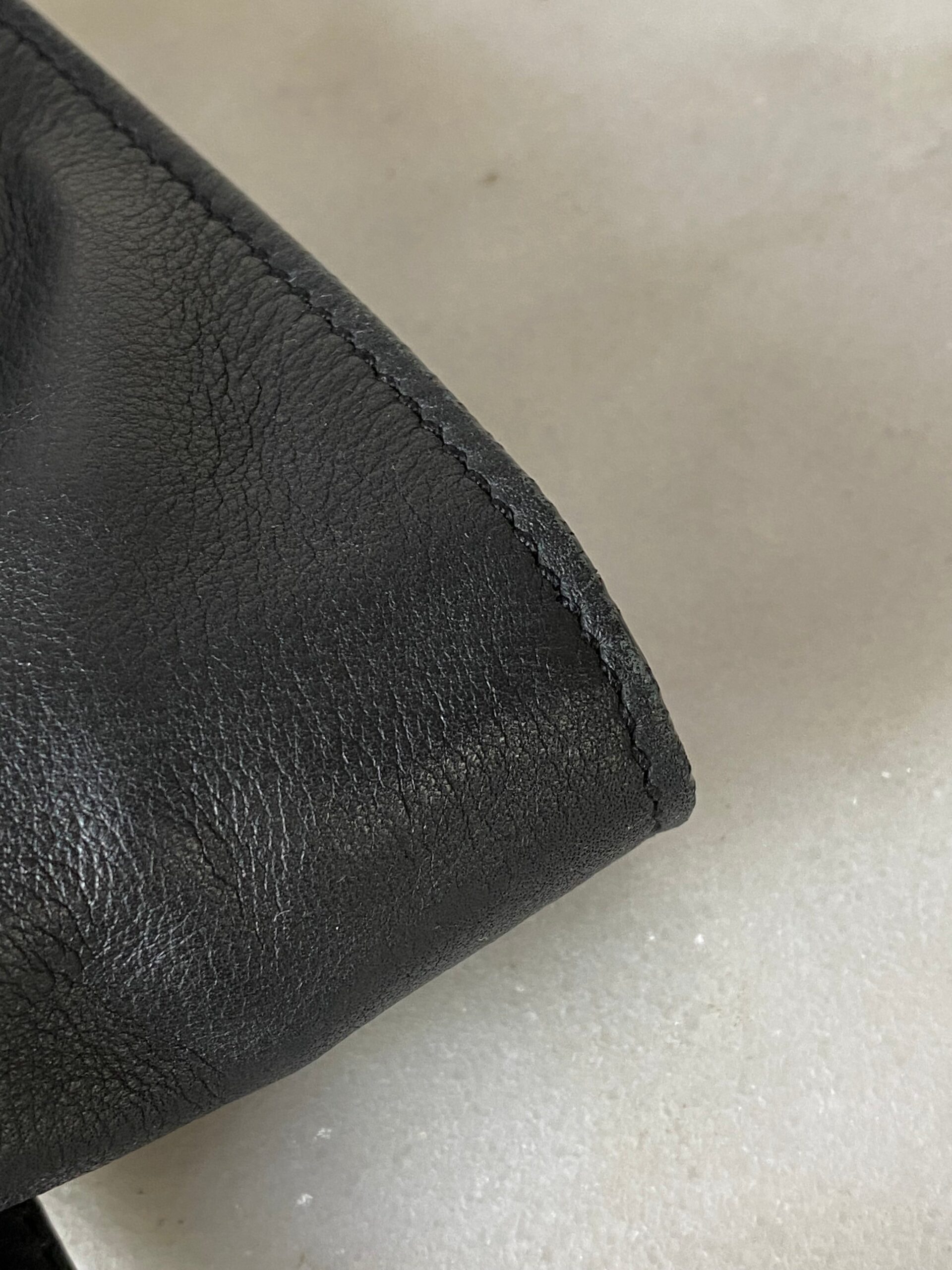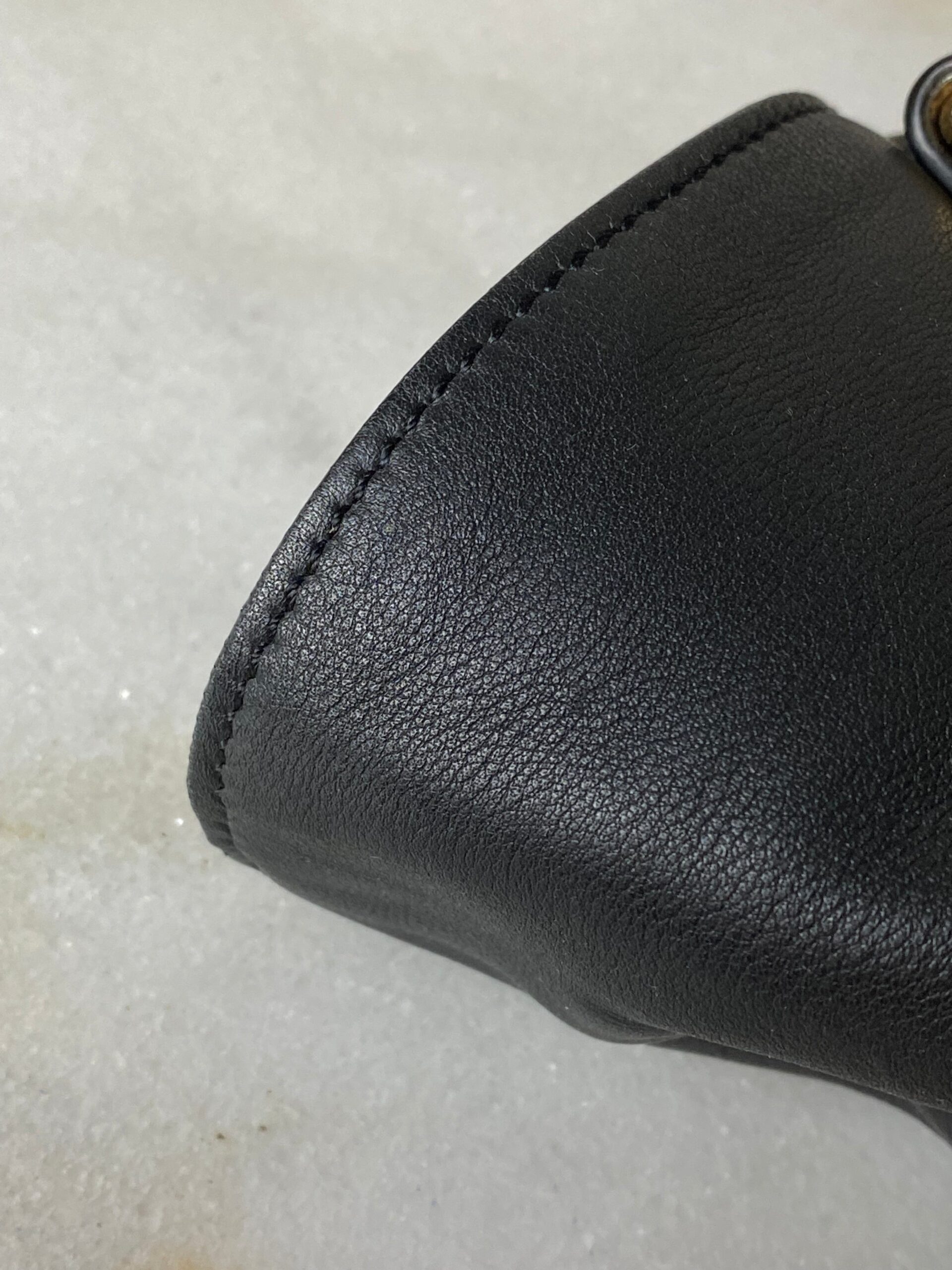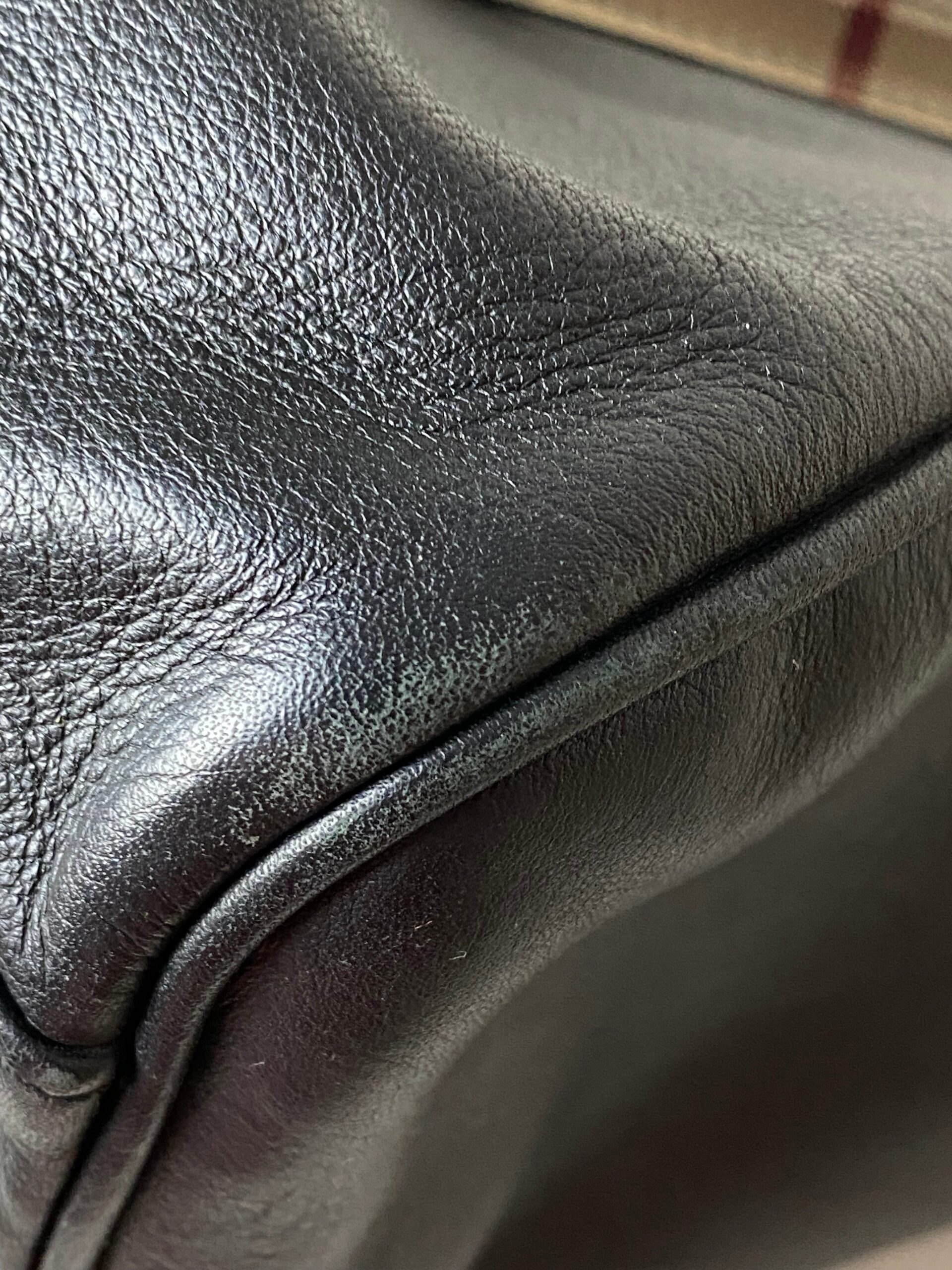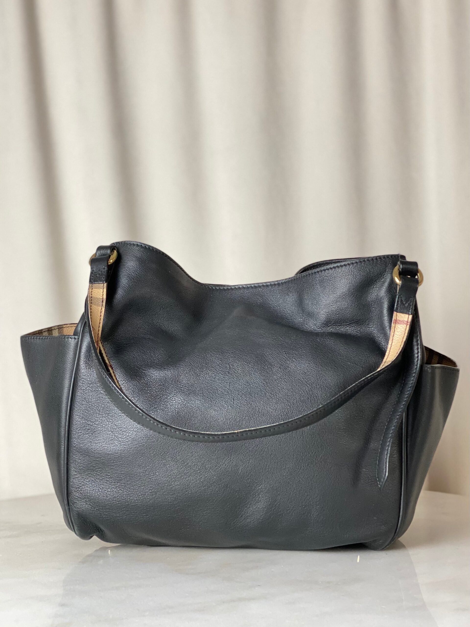 • Material: Black Leather with House Check Canvas Trim