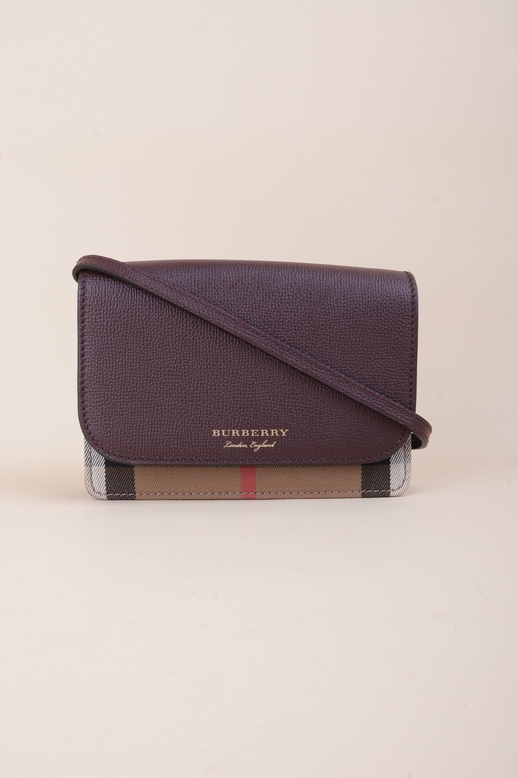 Burberry Burgundy House Check Pebbled Hampshire Crossbody Bag