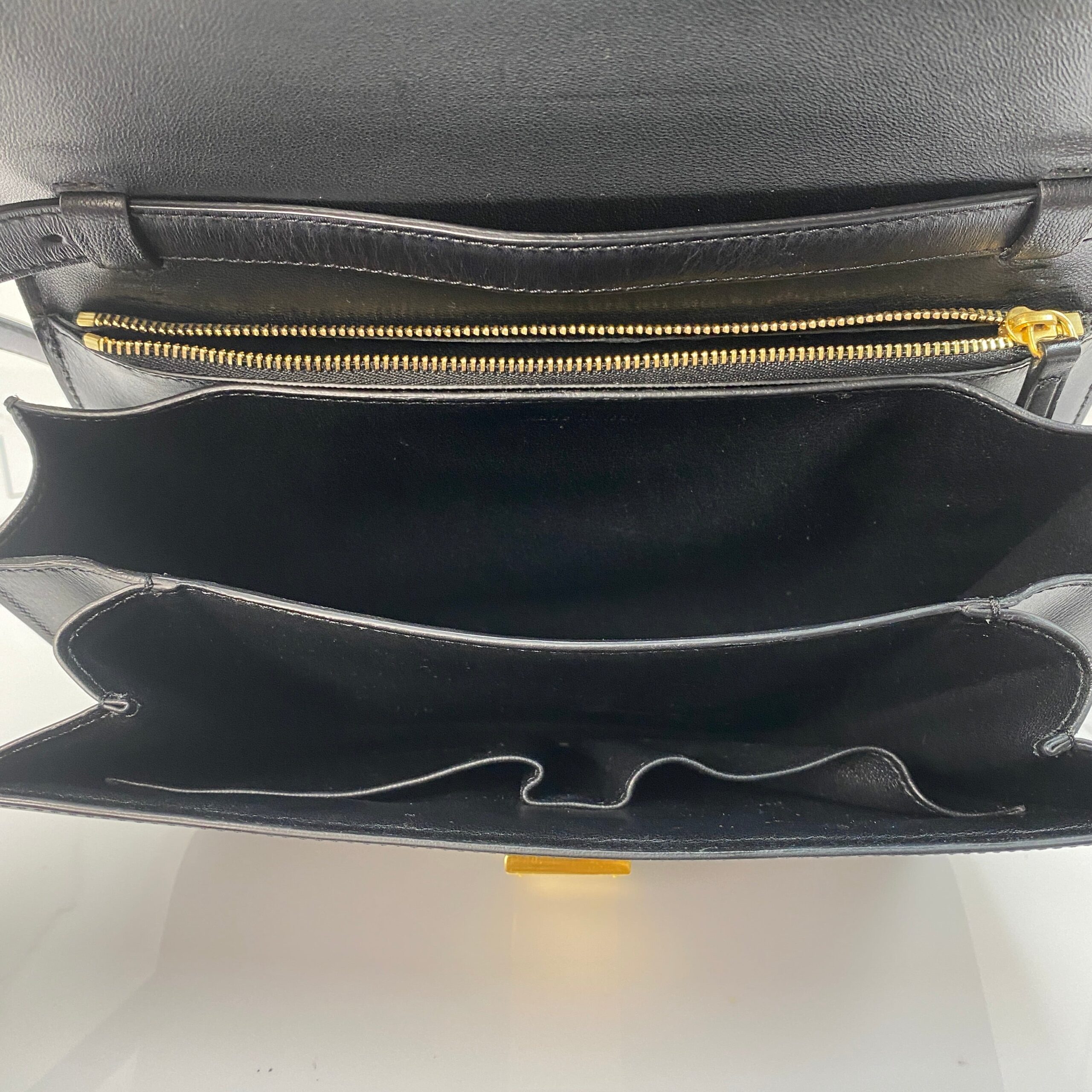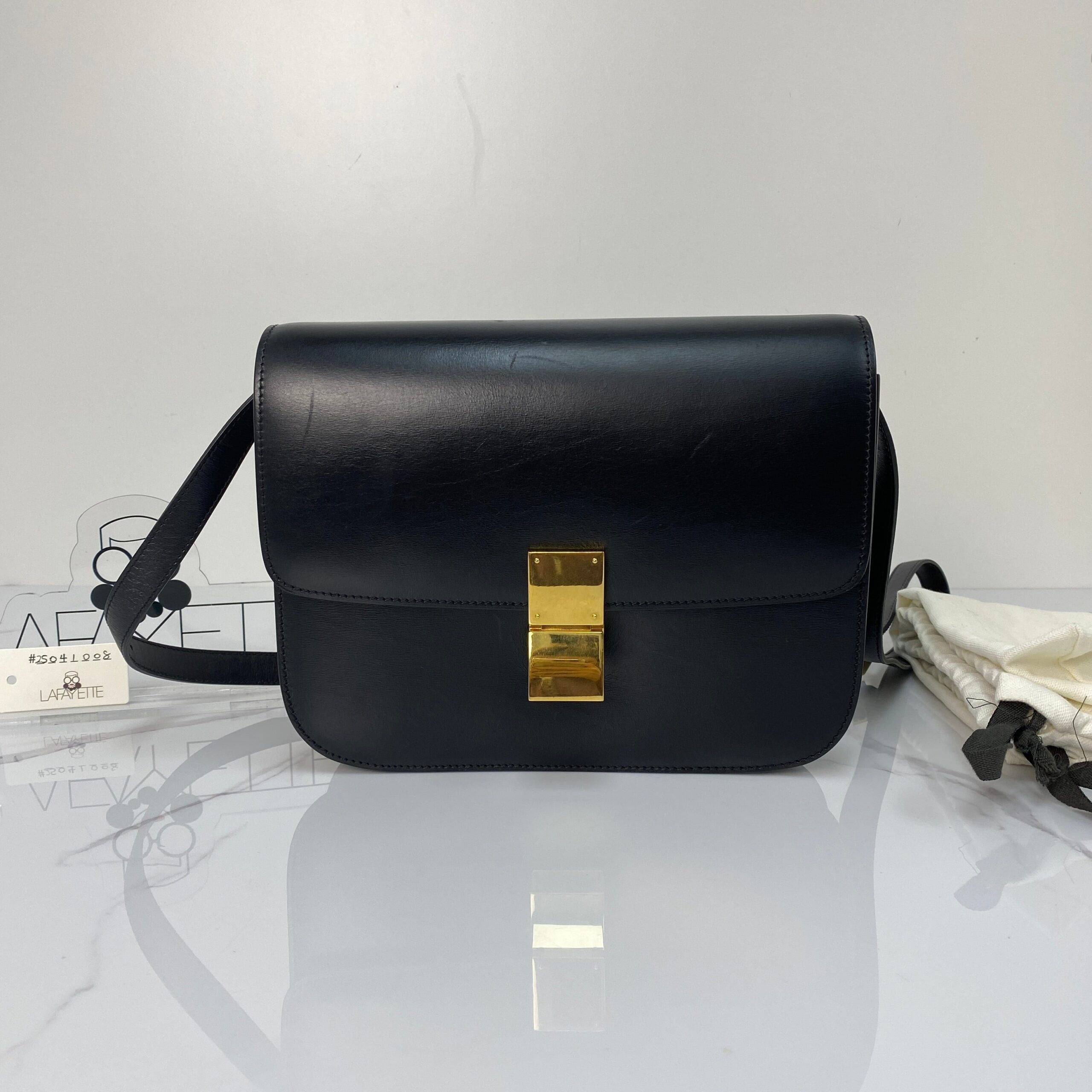 Minimalism, perfected. The Celine Medium Box Bag in black calfskin transitions seamlessly from day to night, office to occasion. Structured, sleek, and endlessly versatile—this is your forever bag.
