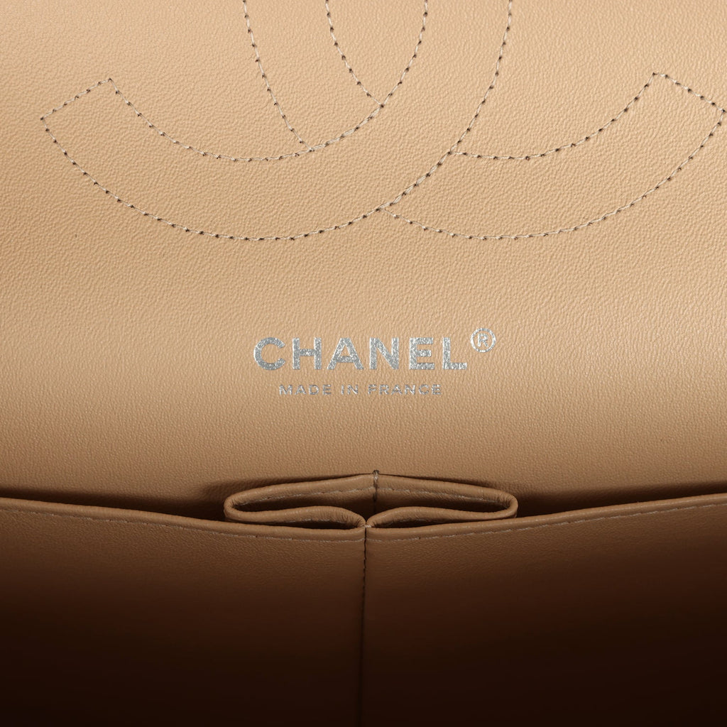 Chanel Jumbo Classic Double Flap Bag Light Beige Caviar Silver Hardware Shop for an authentic Chanel Jumbo Double Flap in light beige caviar leather with silver hardware in new and never worn condition at Madison Avenue Couture.