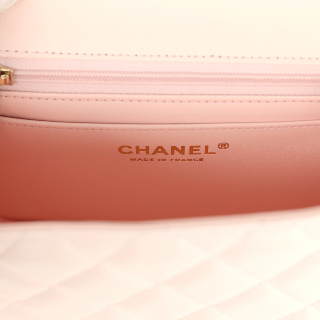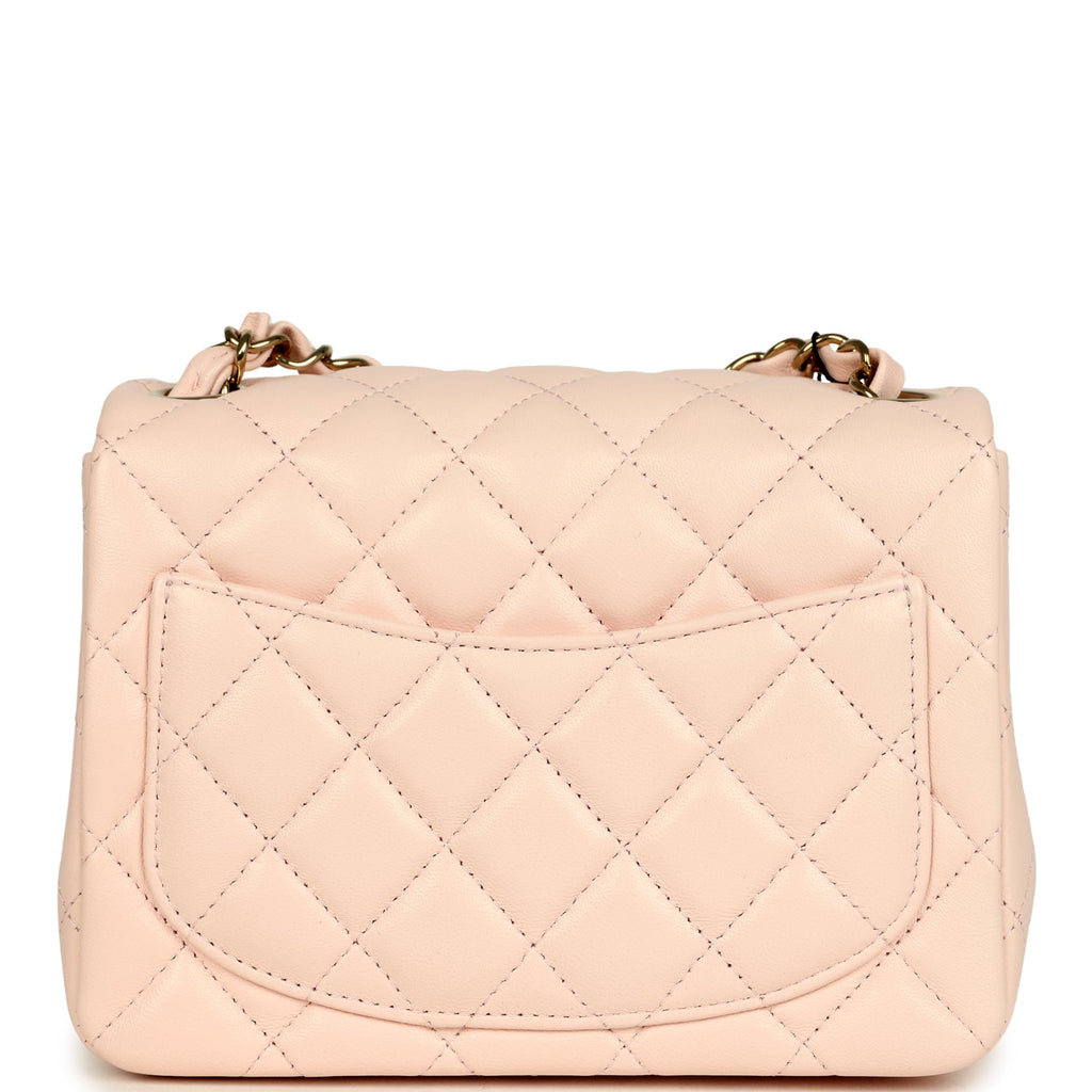 Chanel Mini Classic Square Flap Bag Light Pink Lambskin Light Gold Hardware