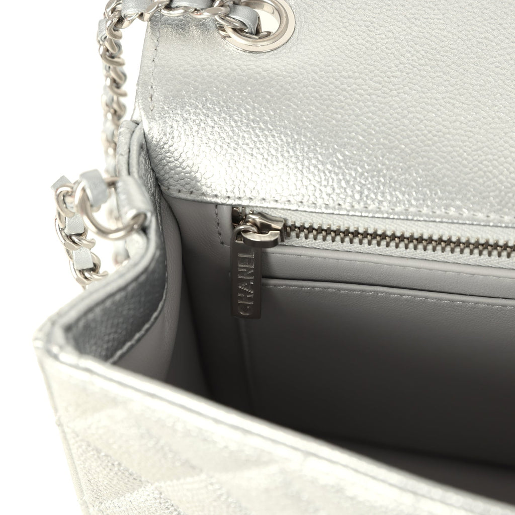 Chanel Small CC Crush Flap Bag Silver Metallic Caviar Silver Hardware