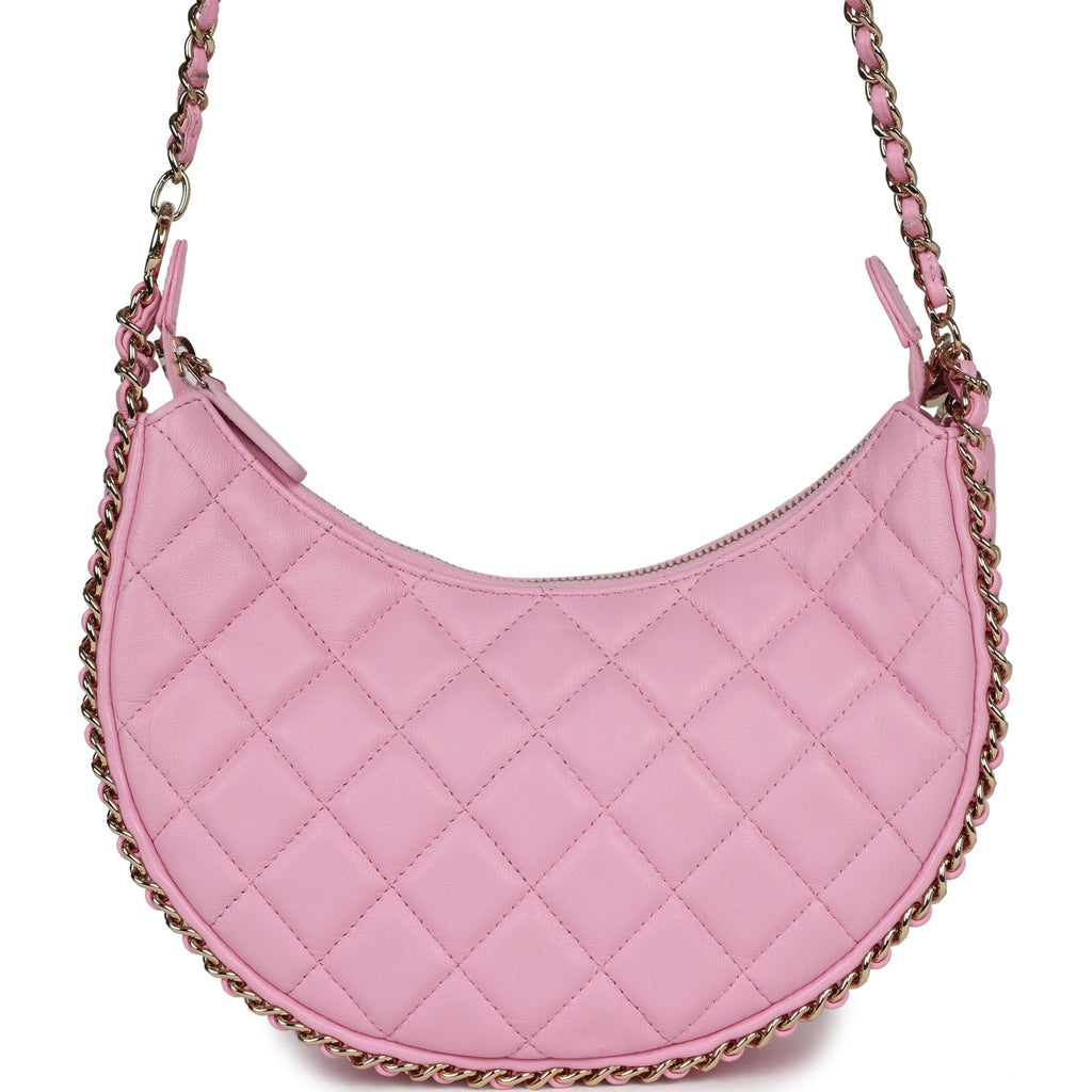 Chanel Small Chain Around Hobo Pink Lambskin Gold Hardware