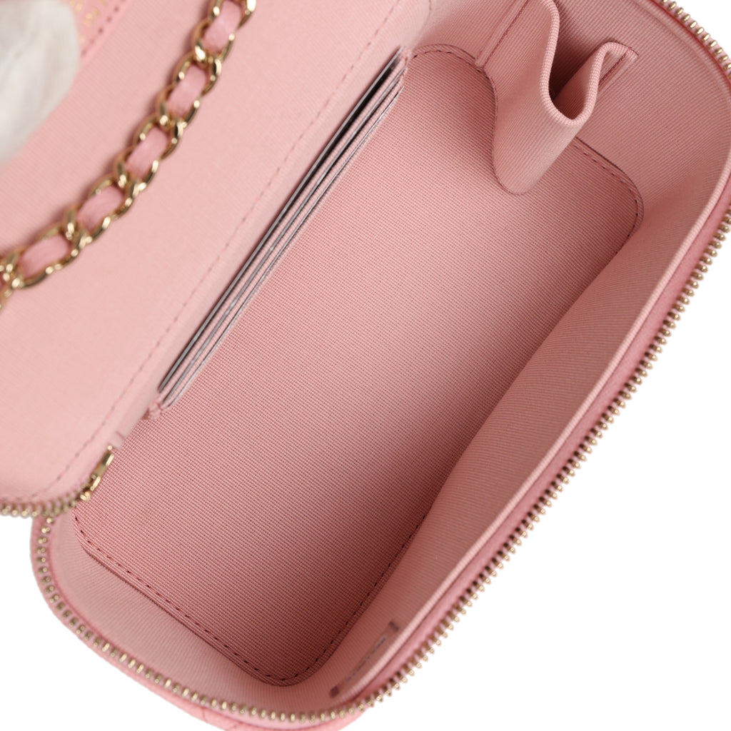 Chanel Small Classic Vanity Case Pink Caviar Light Gold Hardware