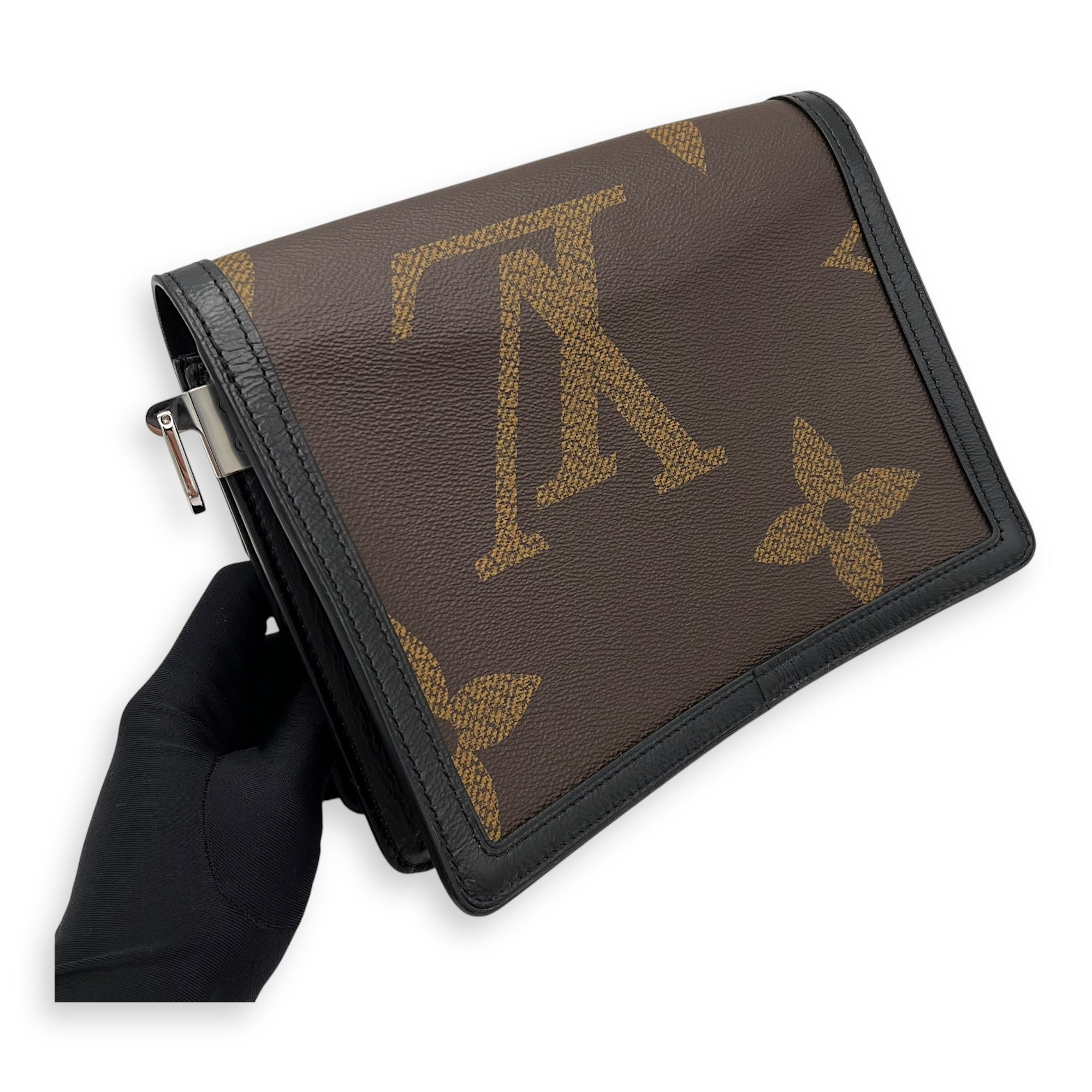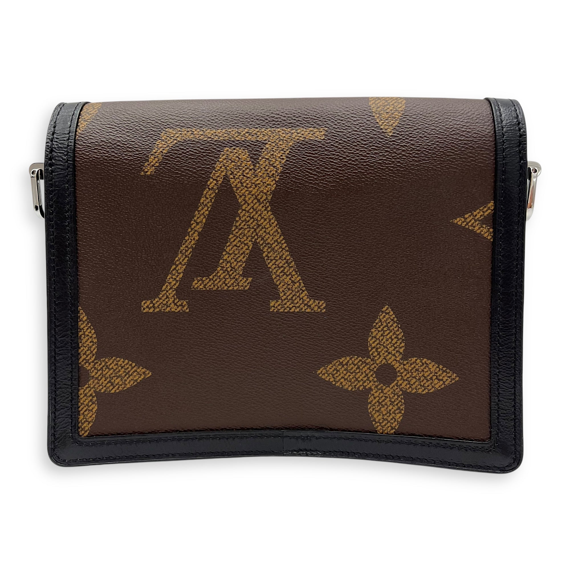 Dauphine Reverse Giant MM Brown Shoulder Bag in Coated Canvas, Silver hardware