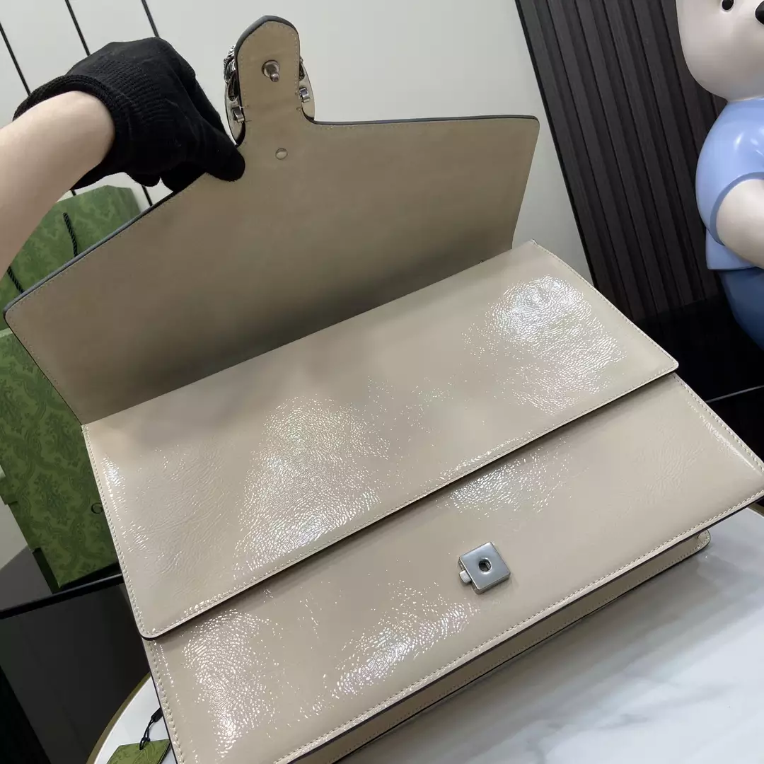 #GucciDionysus #LightGreyPatentLeather #TigerHeadClosure #ShoulderBag #AdjustableSlidingChain #DesignerFashion #LuxuryBag #FashionAccessory