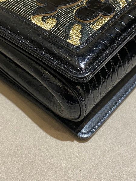 • Material: Black Smooth Leather and Croc Leather Trim with DG Gold Heart Embellished with Faux Pearls