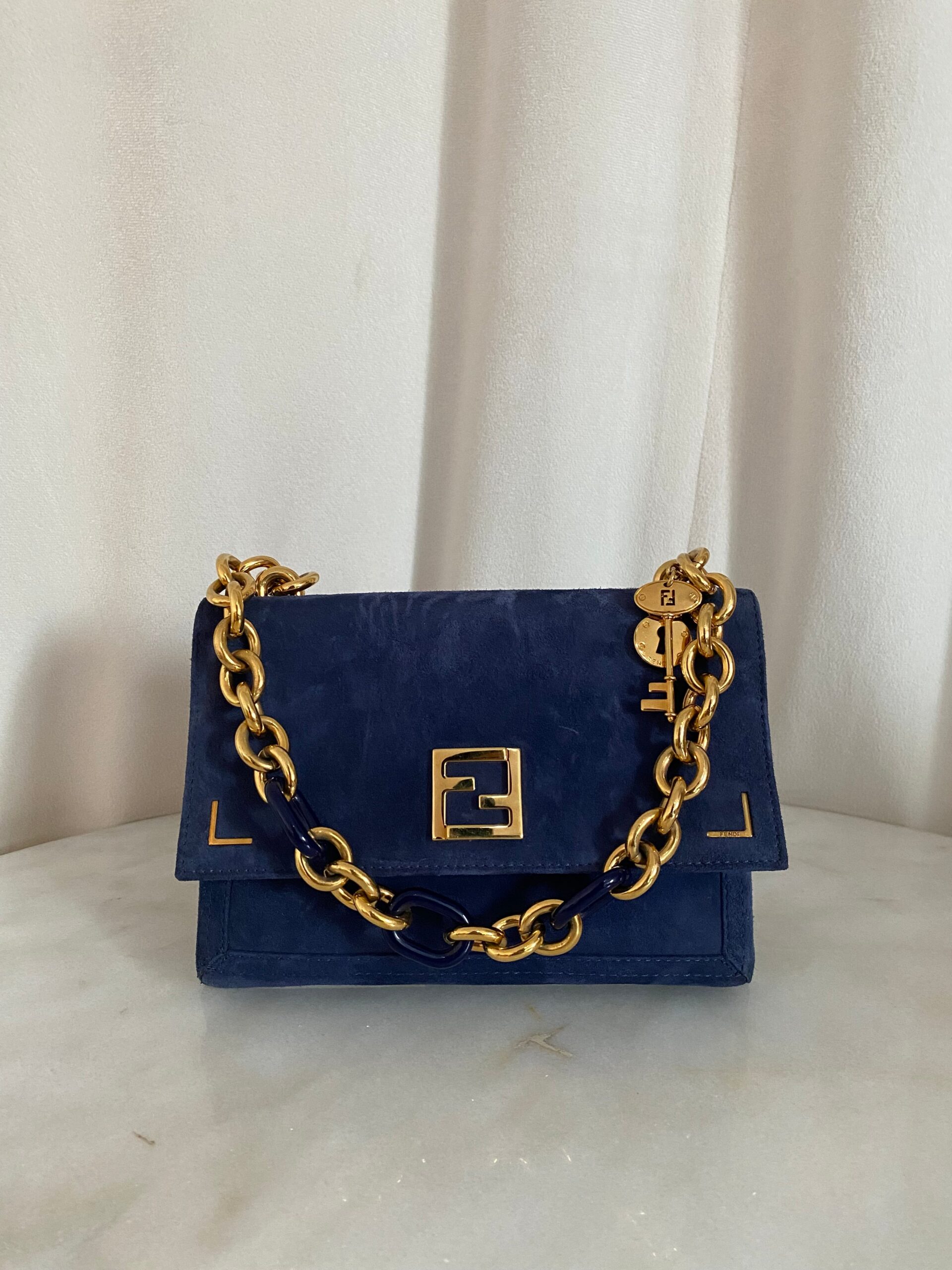 Fendi Blue Velvet Flap Bag