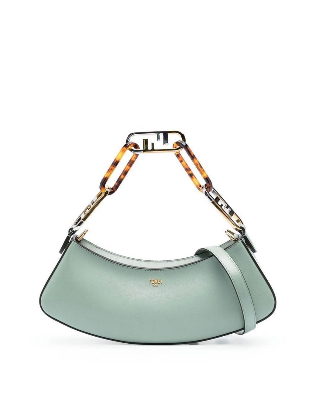 O’Lock swing shoulder bag from FENDI featuring mint green, calf leather, signature O’Lock motif and logo stamp to the front.