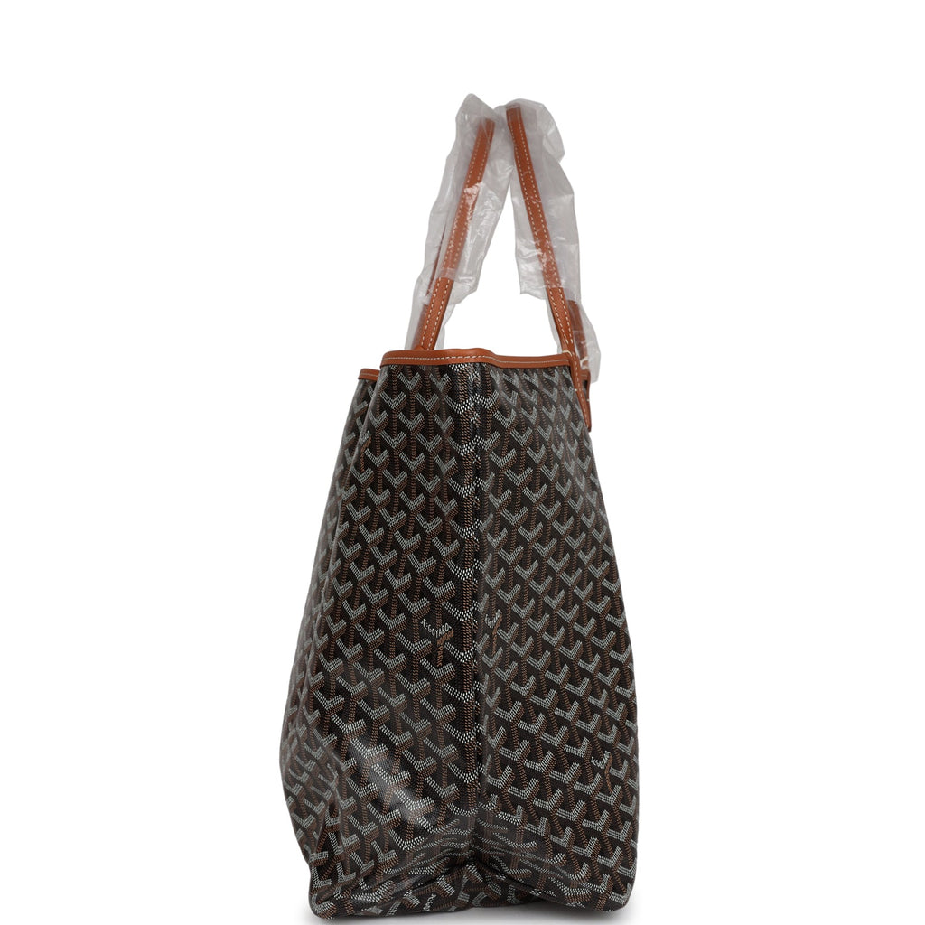 This Goyard Saint Louis GM is in Black Goyardine Canvas & Tan Chevroches Calfskin, has palladium hardware, contrast stitching, and a matching detachable button closure walletThe interior is lined with white canvas.Origin: FranceCondition: New and never wornAccompanied by: Goyard dustbag and removable pouchMeasurements: 15.7″ x 13″ x 7.8″; 8″ shoulder strap