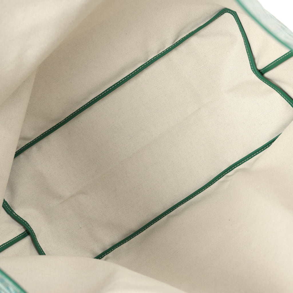 This Goyard St. Louis Tote GM bag is in green canvas with palladium hardware and has contrast stitching, and a matching detachable button closure wallet