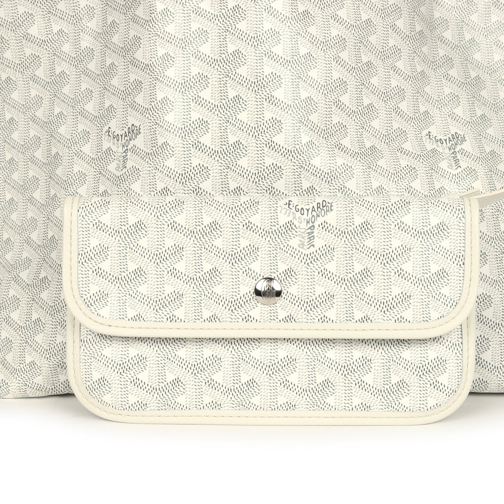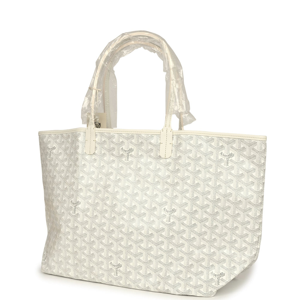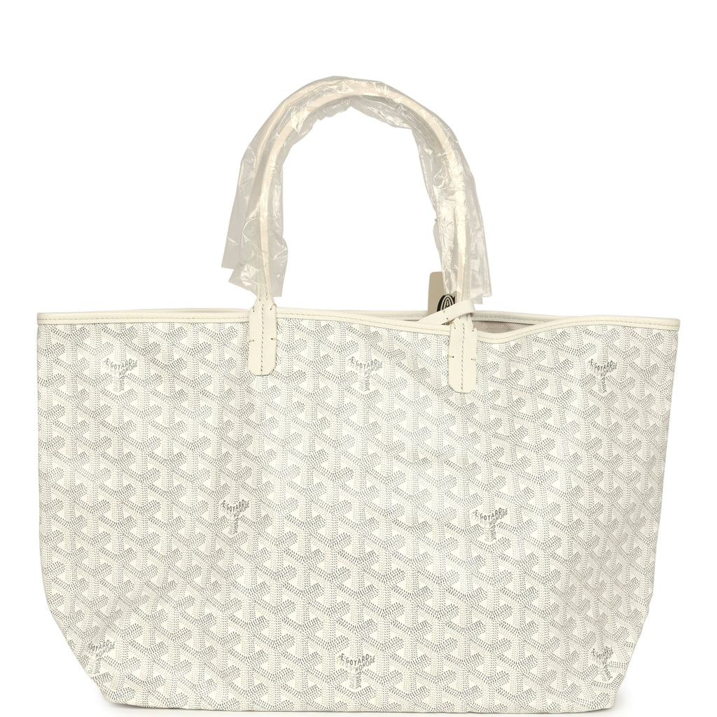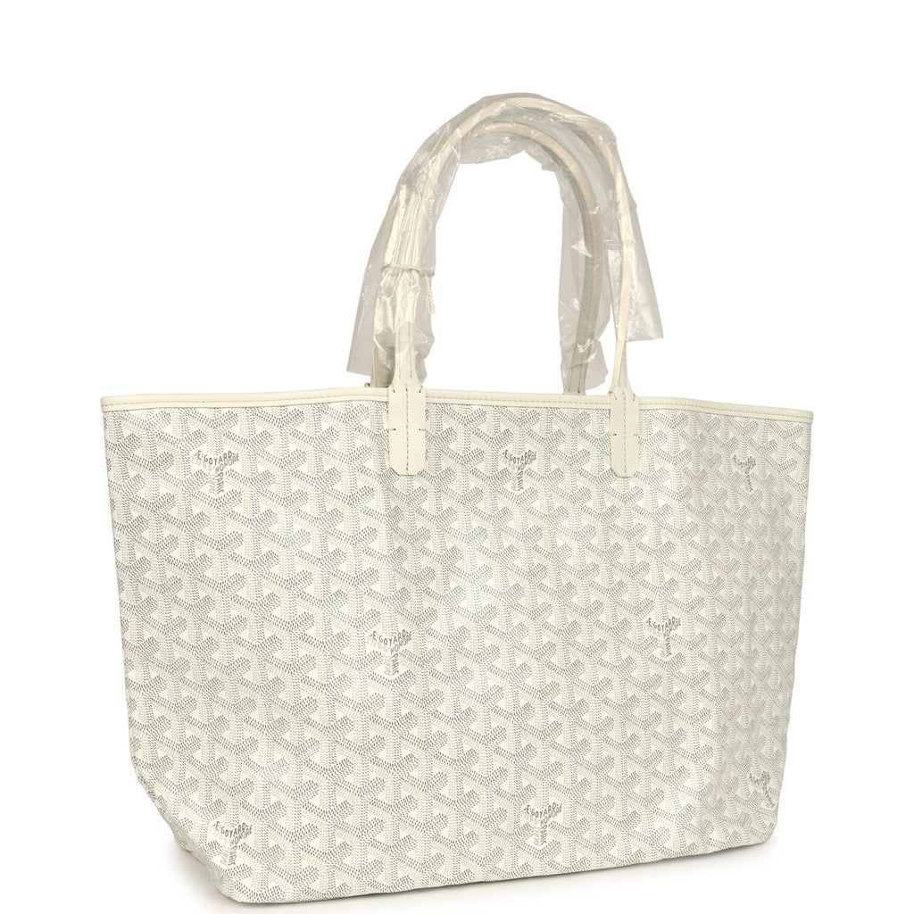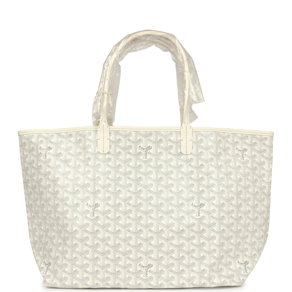 Goyard Goyardine White Saint Louis PM Tote Bag Palladium Hardware Shop for an authentic Goyard white Goyardine Saint Louis PM tote with palladium hardware in new and never worn condition at Madison Avenue Couture.