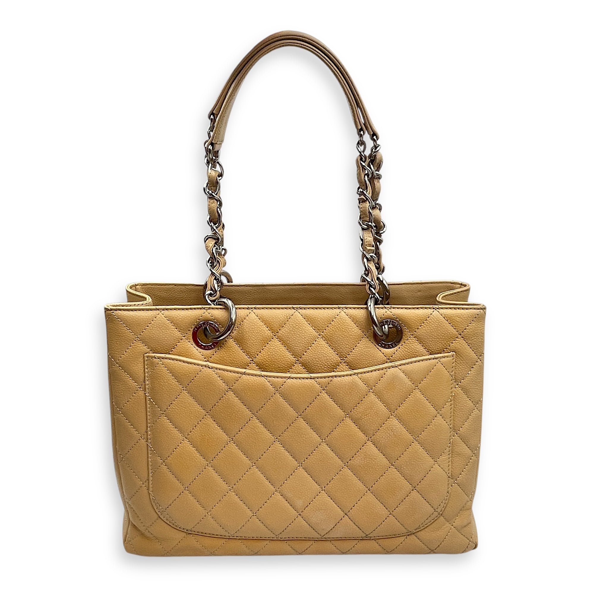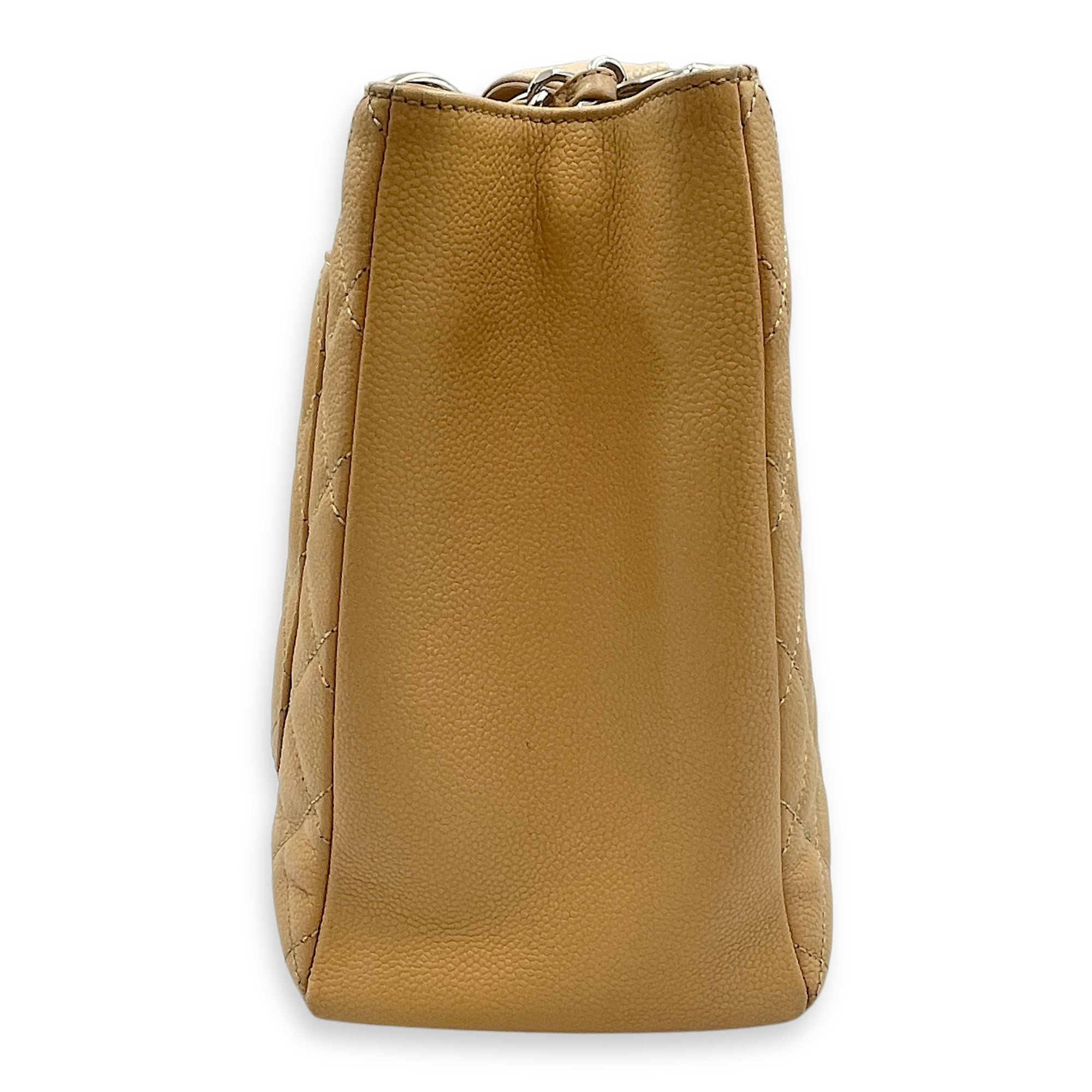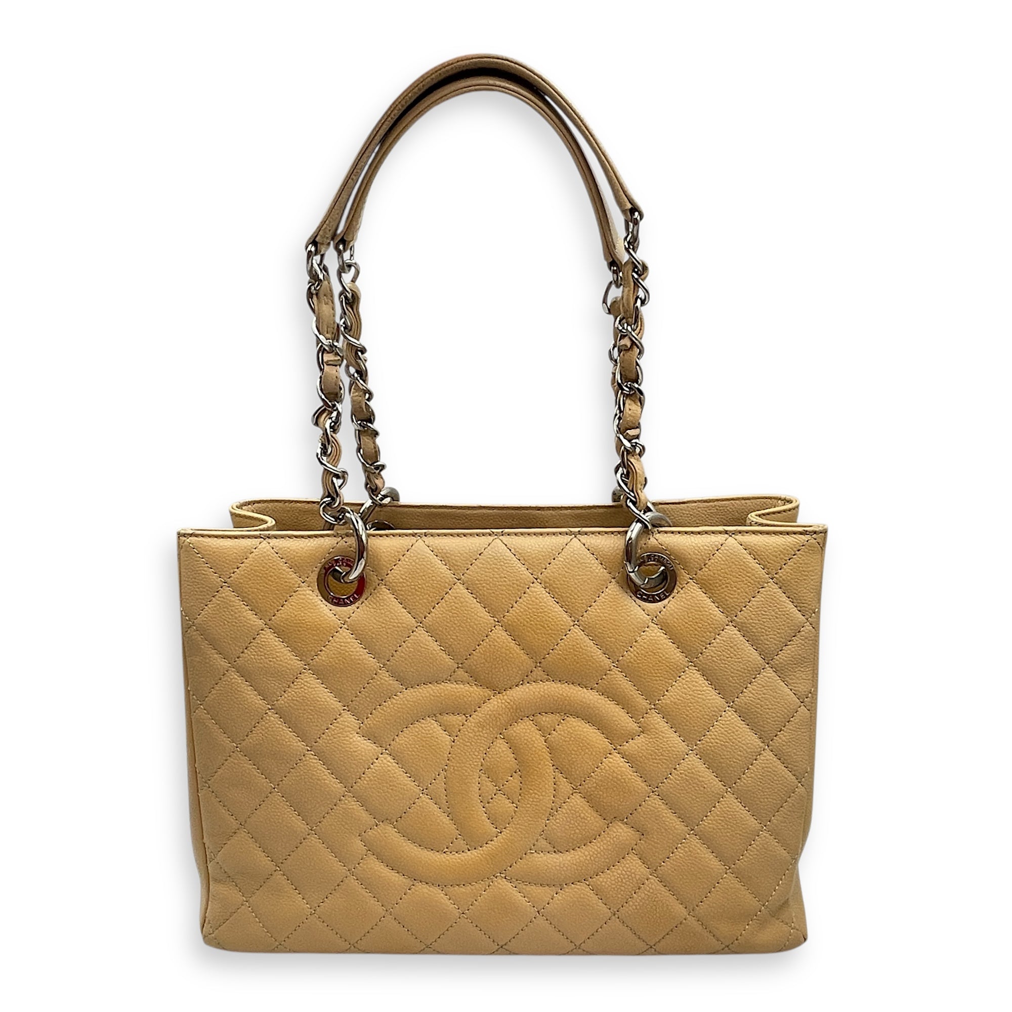 GST Beige Shoulder Bag in Caviar Leather, Silver hardware