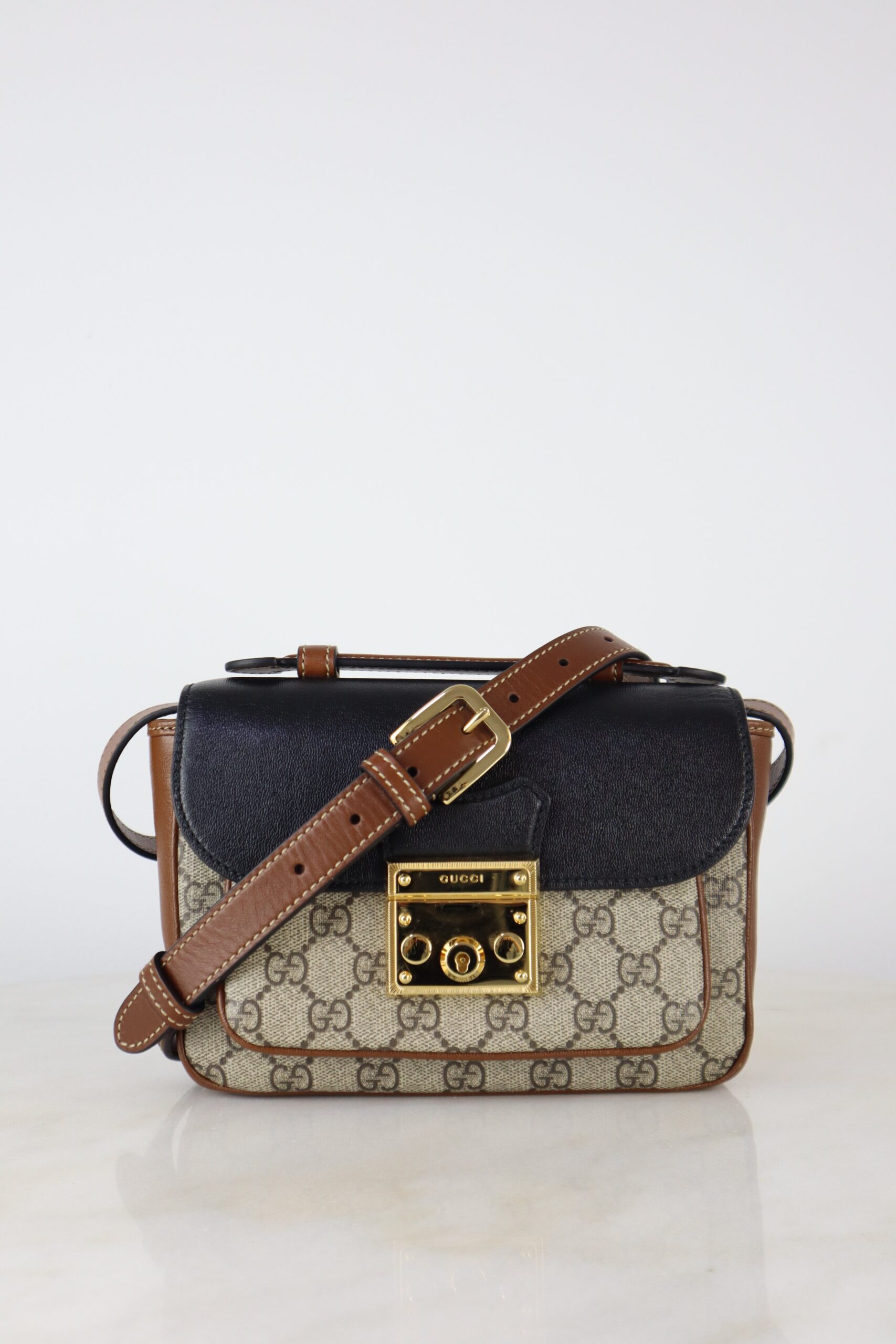 Be the first to review “Gucci Tricolor Monogram GG Supreme New Sakai Lux Mini Padlock Shoulder Bag”