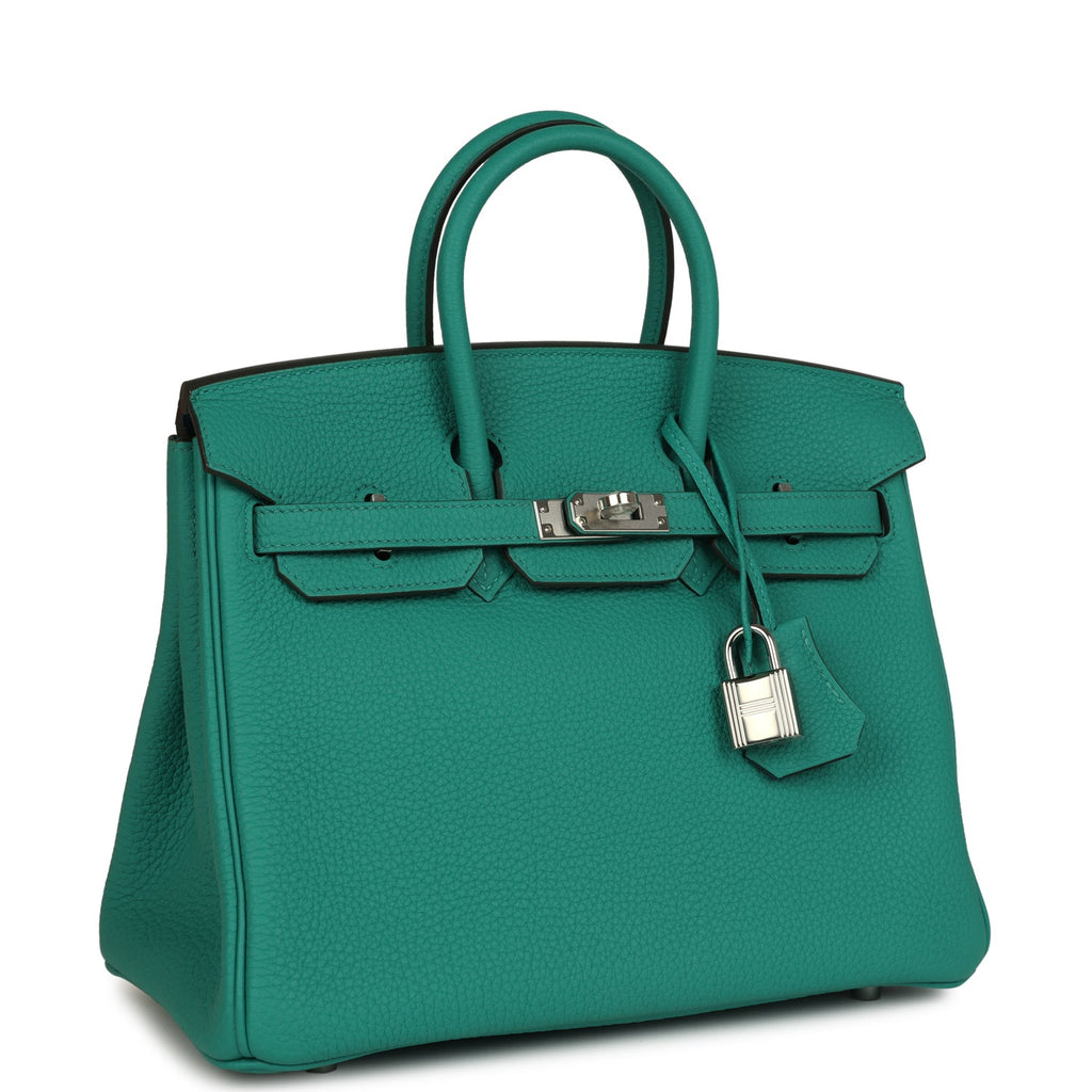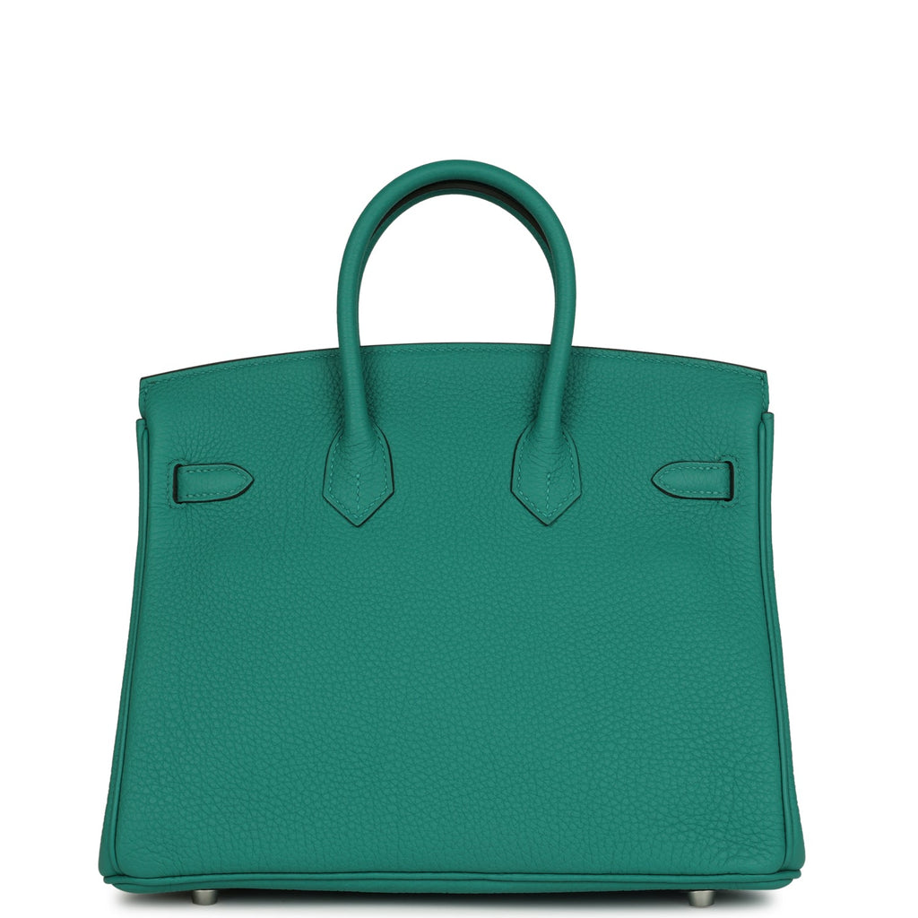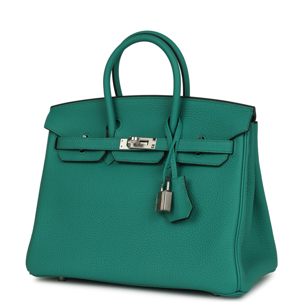 Hermes Birkin 25 Vert Verone Verso Togo Palladium Hardware Shop for an authentic Hermes Birkin 25 in Vert Verone verso togo leather with palladium hardware in new and never worn condition at Madison Avenue Couture.