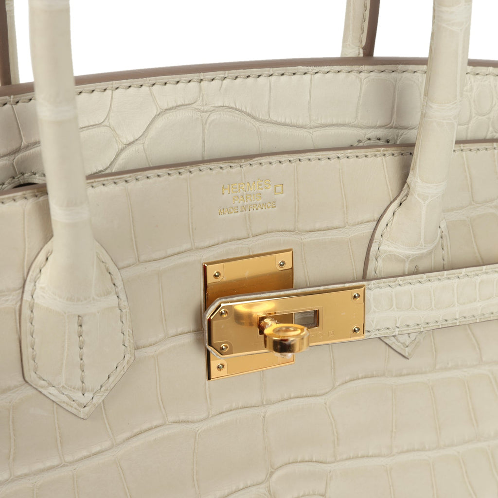 Hermes Birkin 30 Beton Matte Alligator Gold Hardware Shop for an authentic Hermes Birkin 30 in Beton Matte Alligator Mississippiensis leather with gold hardware in new and never worn condition at Madison Avenue Couture.
