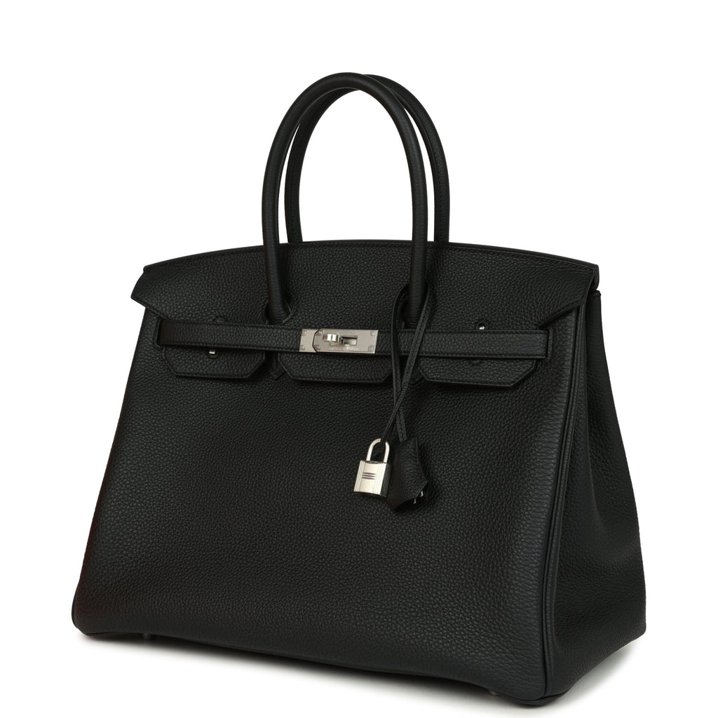 Hermes Birkin 35 Black Togo Brushed Palladium Hardware Shop for an authentic Hermes Birkin 35 in Black togo leather with brushed palladium hardware in new and never worn condition at Madison Avenue Couture.