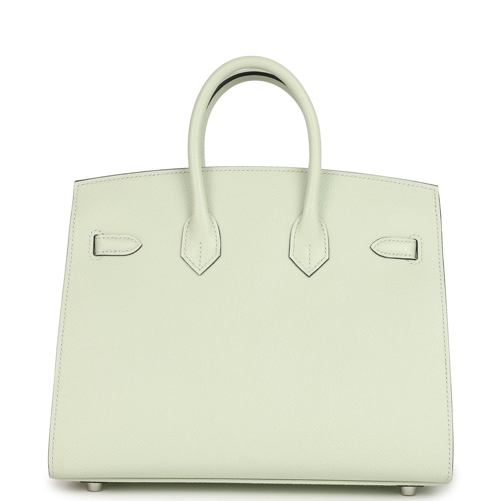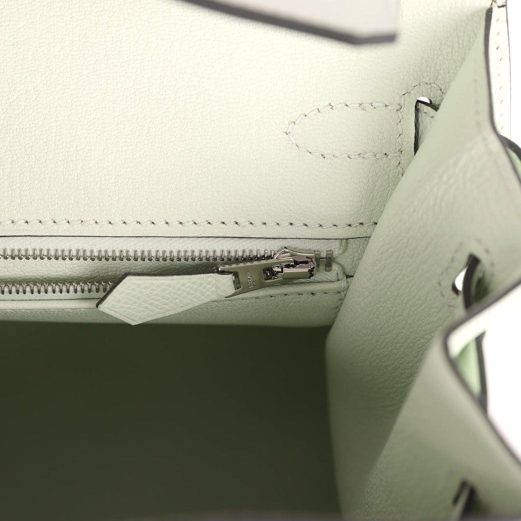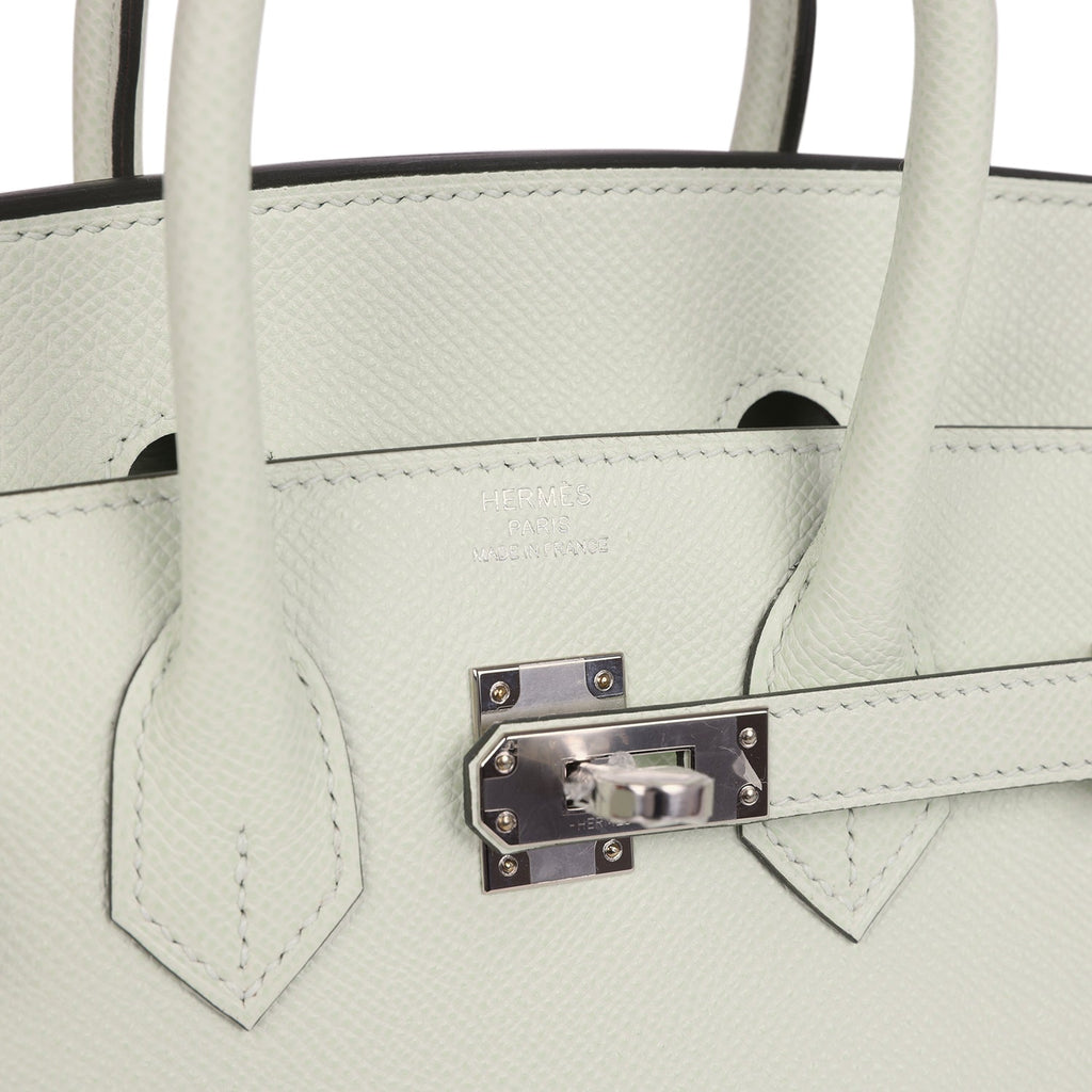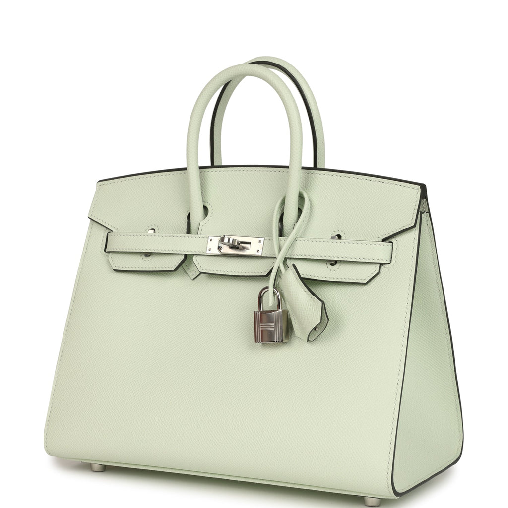 Hermes Birkin Sellier 25 Vert Fizz Epsom Palladium Hardware Shop for an authentic Hermes Birkin 25 in Vert Fizz epsom leather with palladium hardware in new and never worn condition at Madison Avenue Couture.