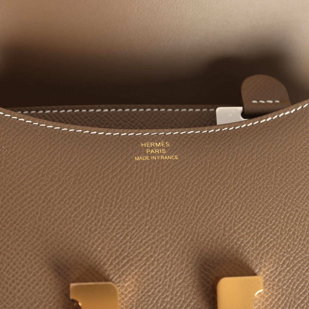 Hermes Constance 18 Etoupe Epsom Gold Hardware Shop for an authentic Hermes Constance 1-18 in Etoupe epsom leather with gold hardware in new and never worn condition at Madison Avenue Couture.