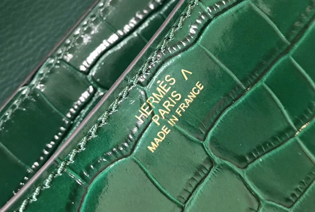 Hermes Constance 18 Handmade Bag In Green Embossed Crocodile