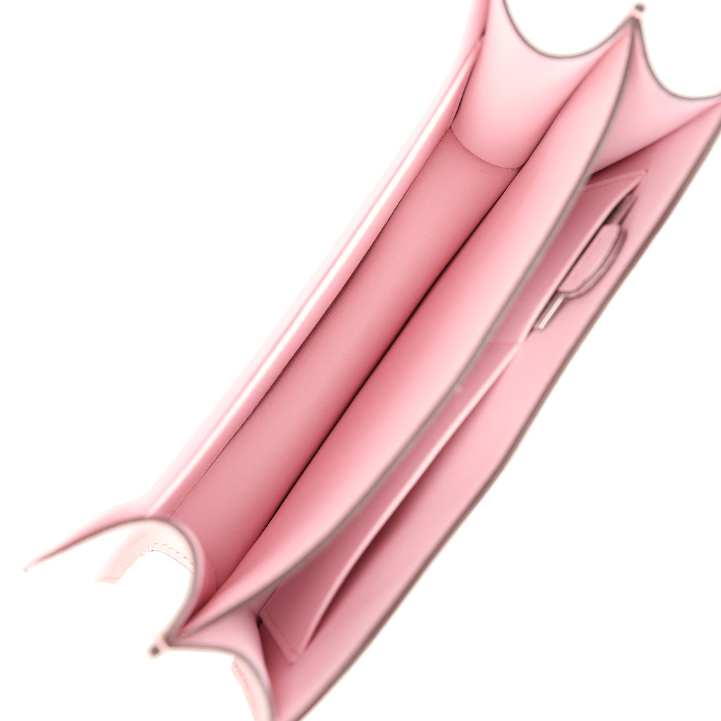 This Constance 1-18 is in Rose Darling chevre mysore leather with palladium hardware and has tonal stitching, a metal “H” snap lock closure and adjustable shoulder strap.The interior is lined with Rose Darling lambskin and has two open pocket on the front wall, a removable mirror, a center divide, and a slit pocket on the back wall.Collection: K (2025)Origin: FranceCondition: New and never worn (plastic on hardware)Accompanied by: Hermes box, Hermes dustbag, felt, carebook and removable mirrorMeasurements: 7.25″ width x 6.25″ height x 2.25″ depth; 20″ adjustable shoulder strap