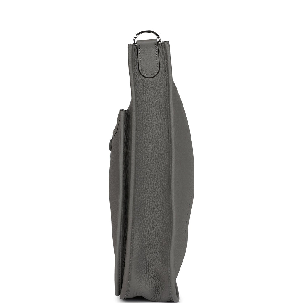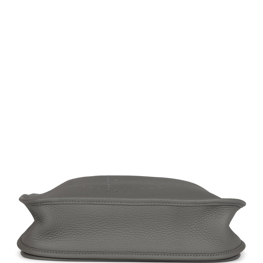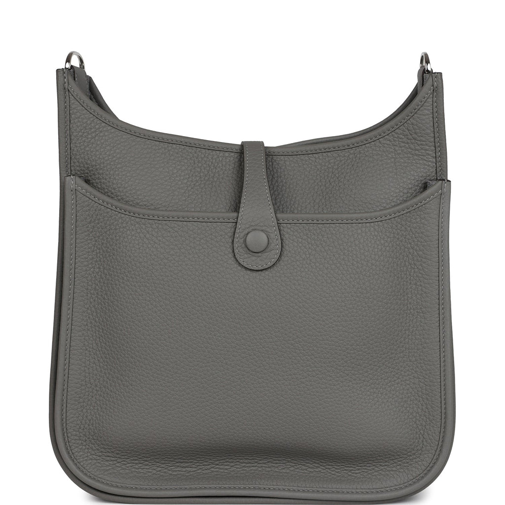 Hermes Evelyne III PM Gris Meyer Clemence Palladium Hardware Shop for an authentic Hermes Evelyne PM in Gris Meyer clemence leather with palladium hardware in new and never worn condition at Madison Avenue Couture.