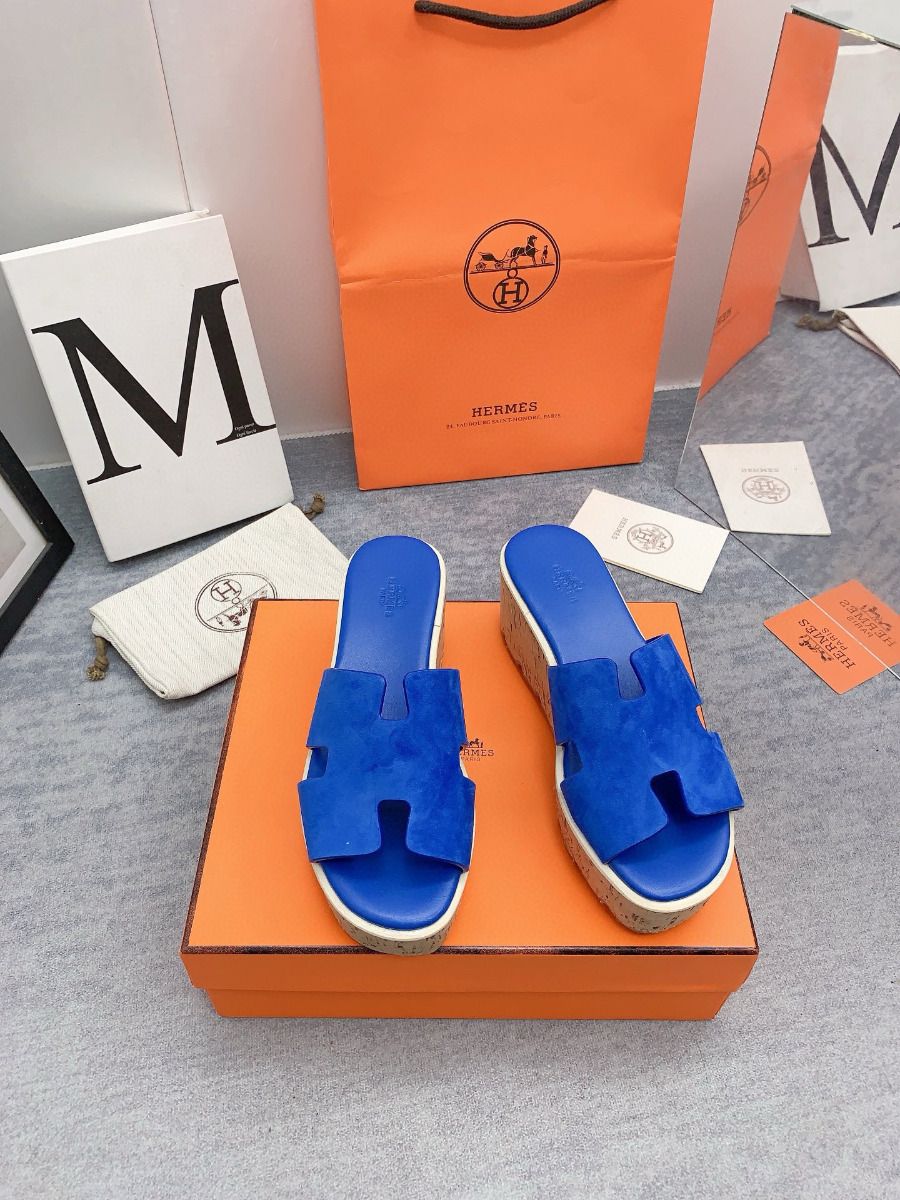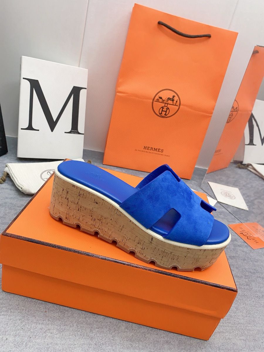 Where in Guangzhou, China can I buy a 1:1 replica Hermes Eze 30 Cork Platform Sandals in Blue Suede Leather