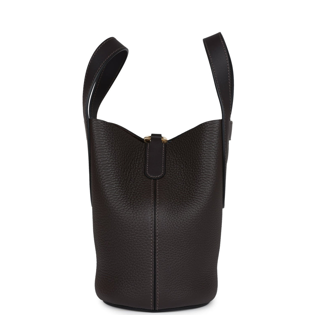 Hermes In-The-Loop 18 Ebene Clemence and Swift Gold Hardware Shop for an authentic Hermes In-The-Loop 18 in Ebene clemence and swift leather with gold hardware in new and never worn condition at Madison Avenue Couture.