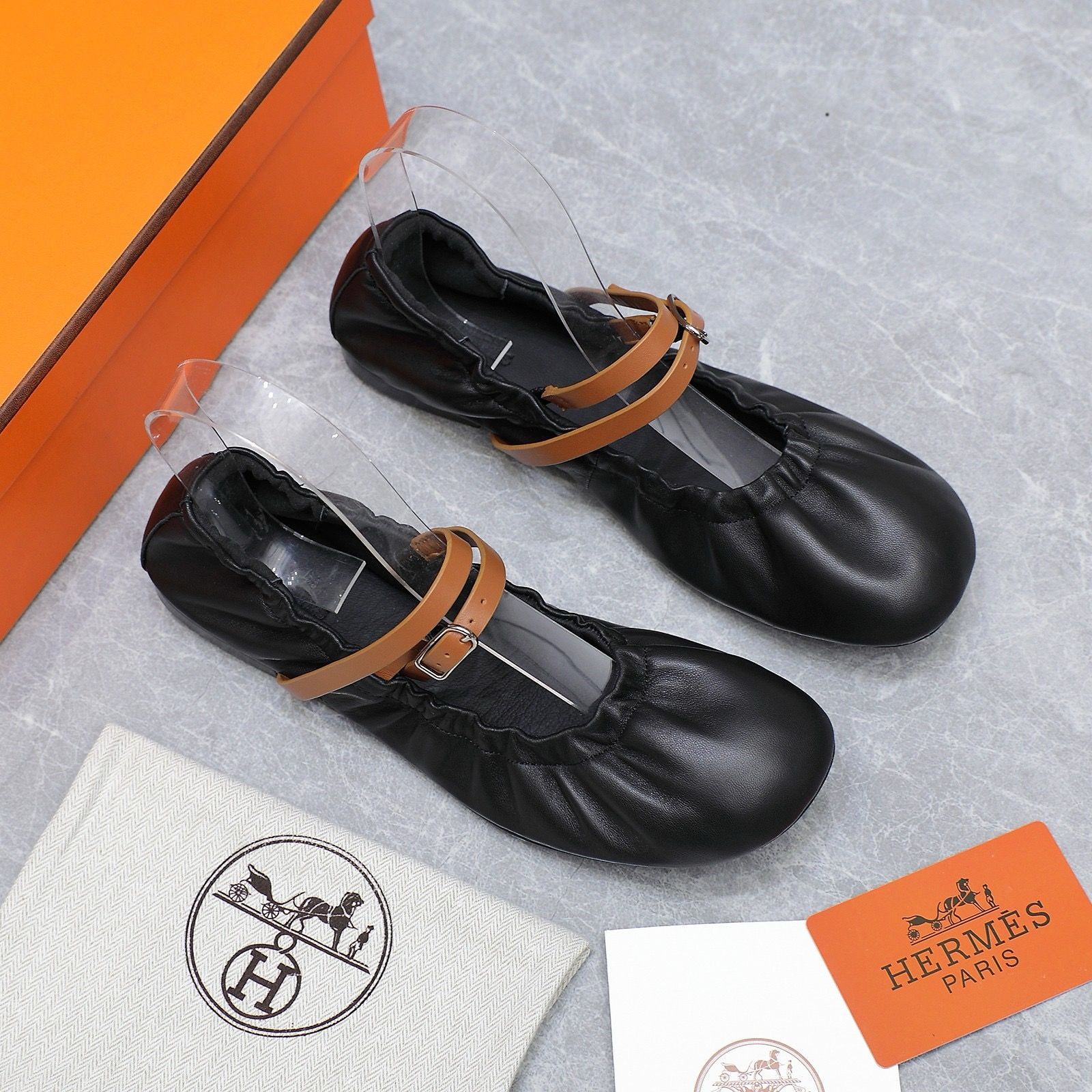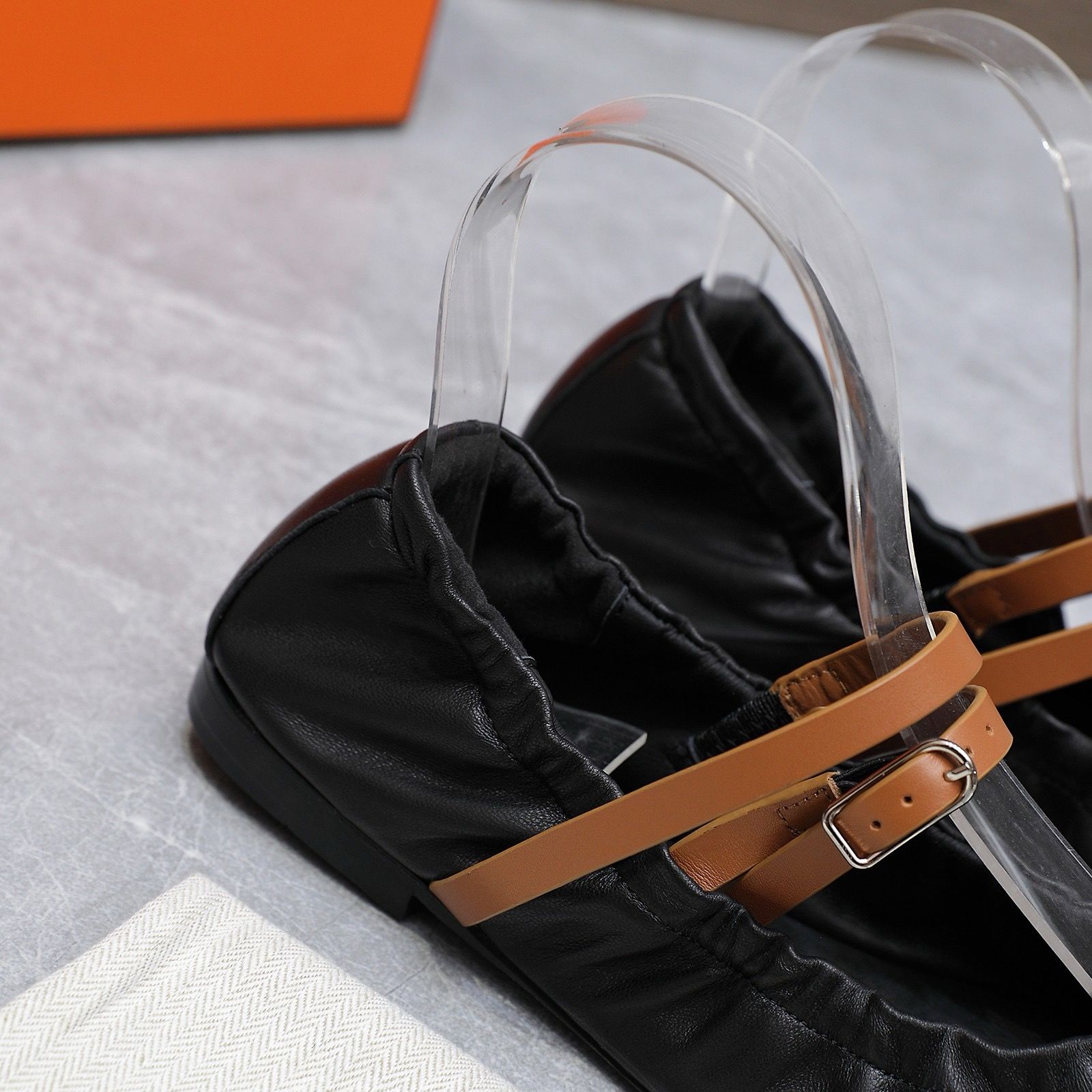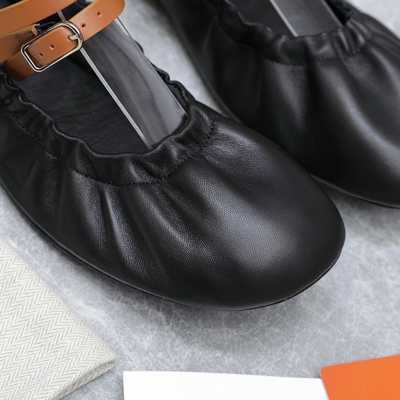 Hermes creates wear-forever shoes that’ll elevate anything you style them with. These Jolly Ballet flats have been crafted from nappa leather in a sweet Mary Jane shape with square toes and signature wrap-around ankle strap.