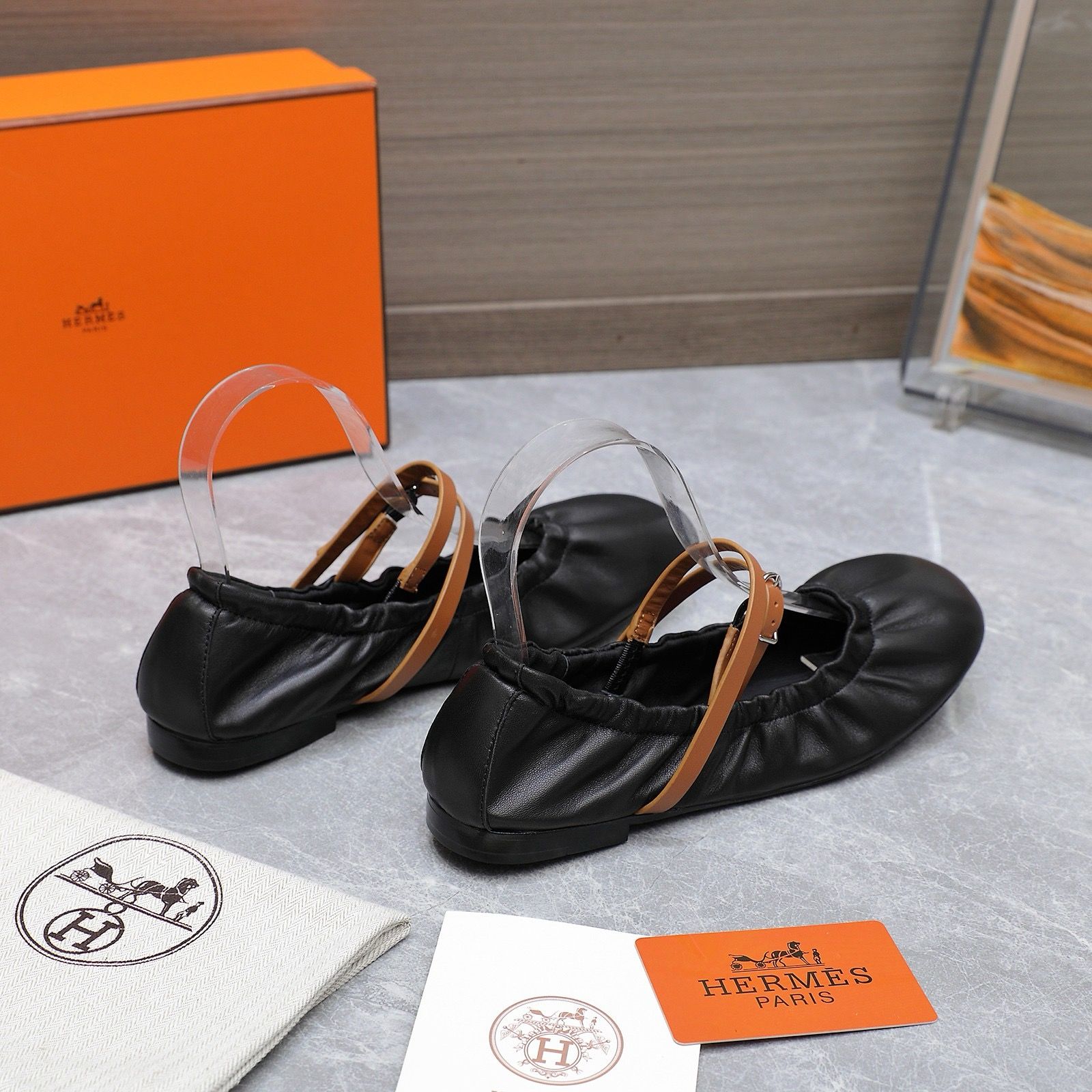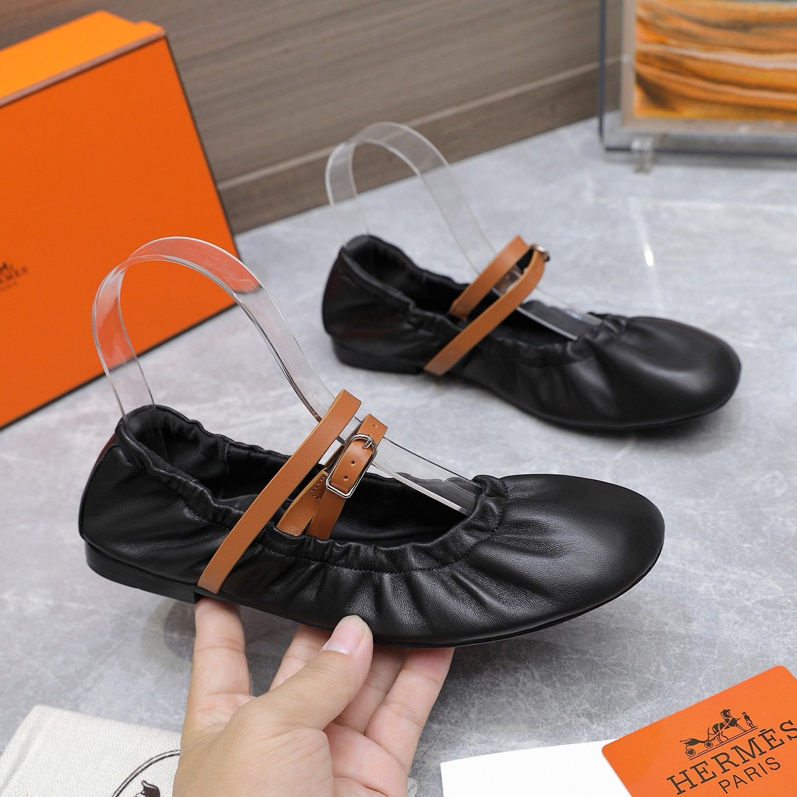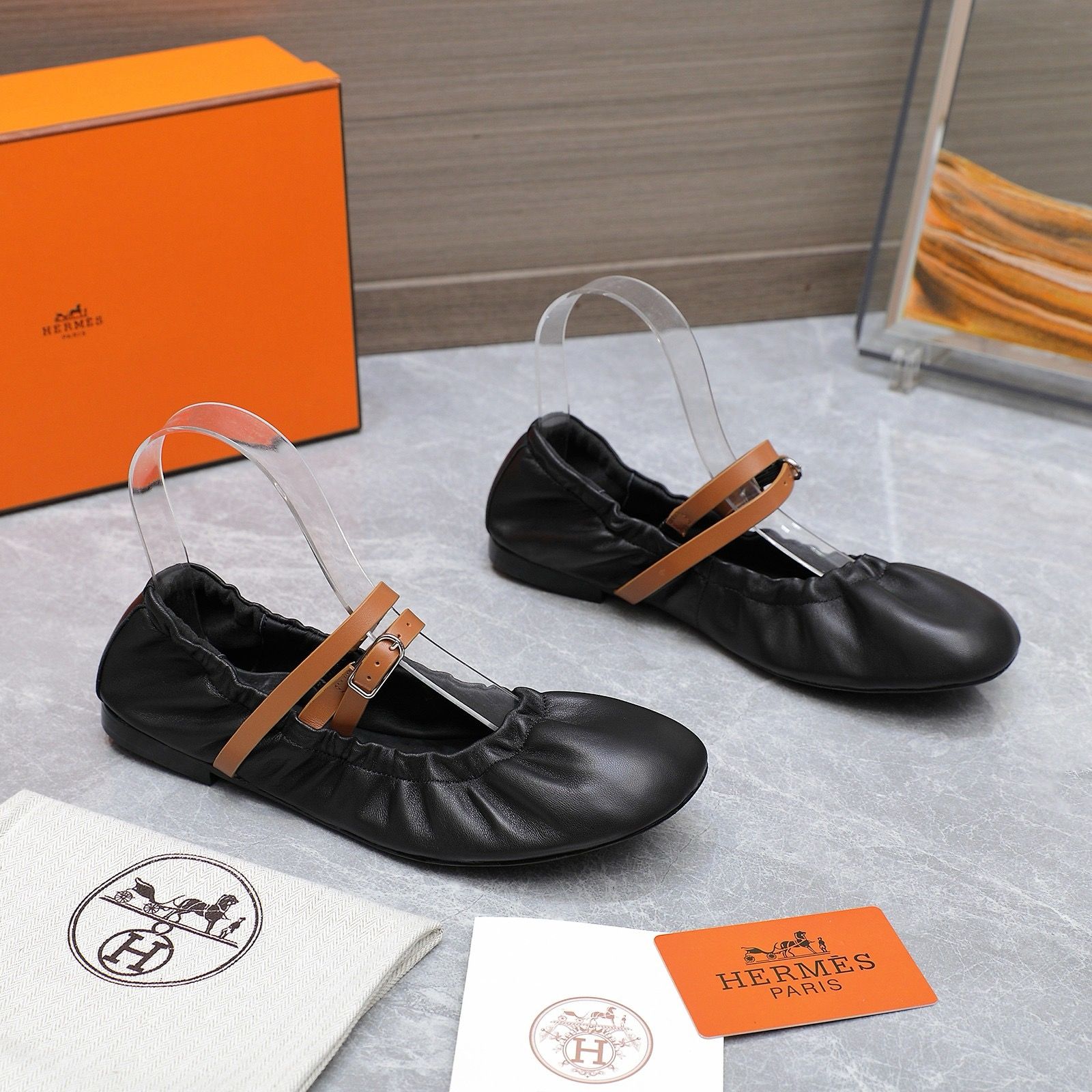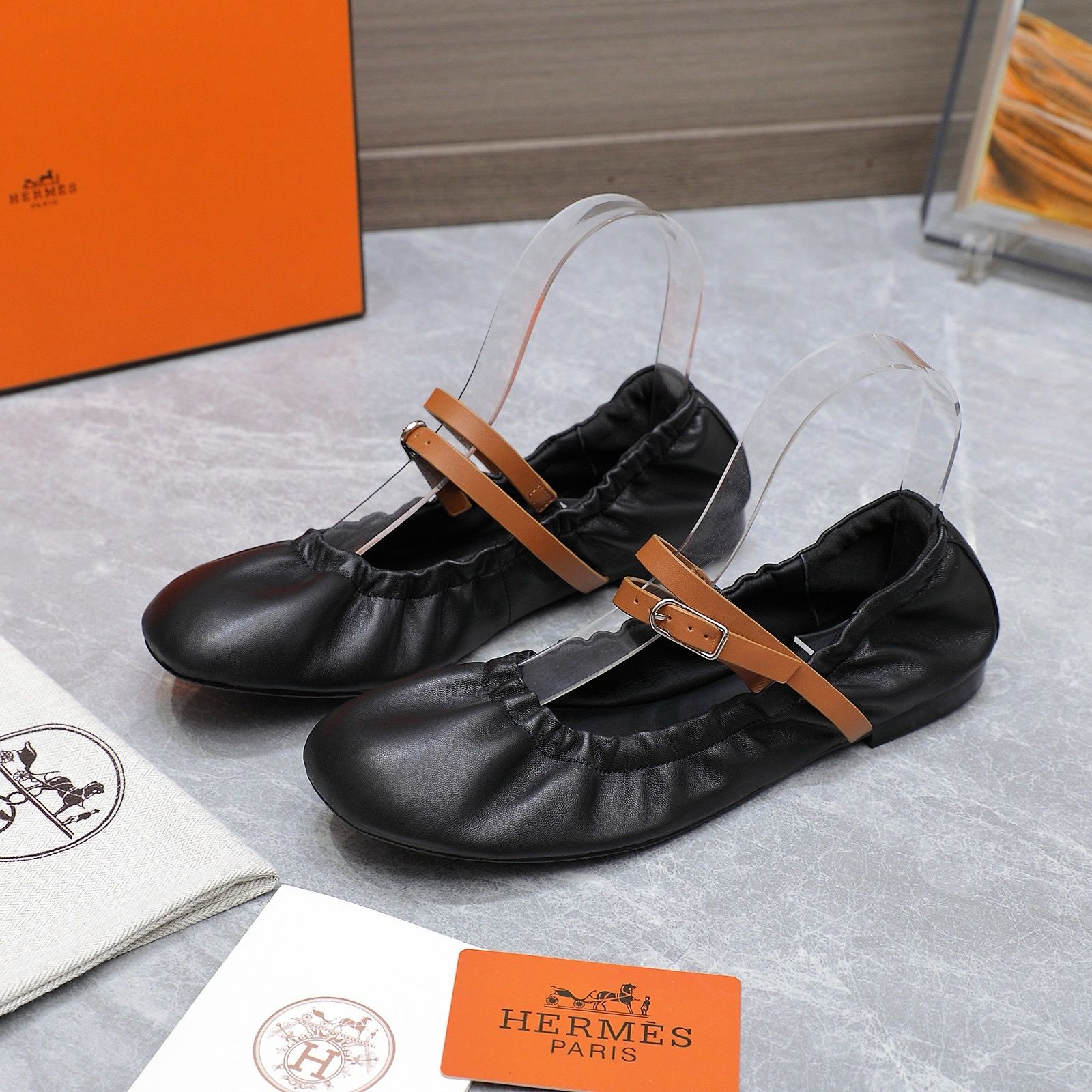 Hermes creates wear-forever shoes that’ll elevate anything you style them with. These Jolly Ballet flats have been crafted from nappa leather in a sweet Mary Jane shape with square toes and signature wrap-around ankle strap.