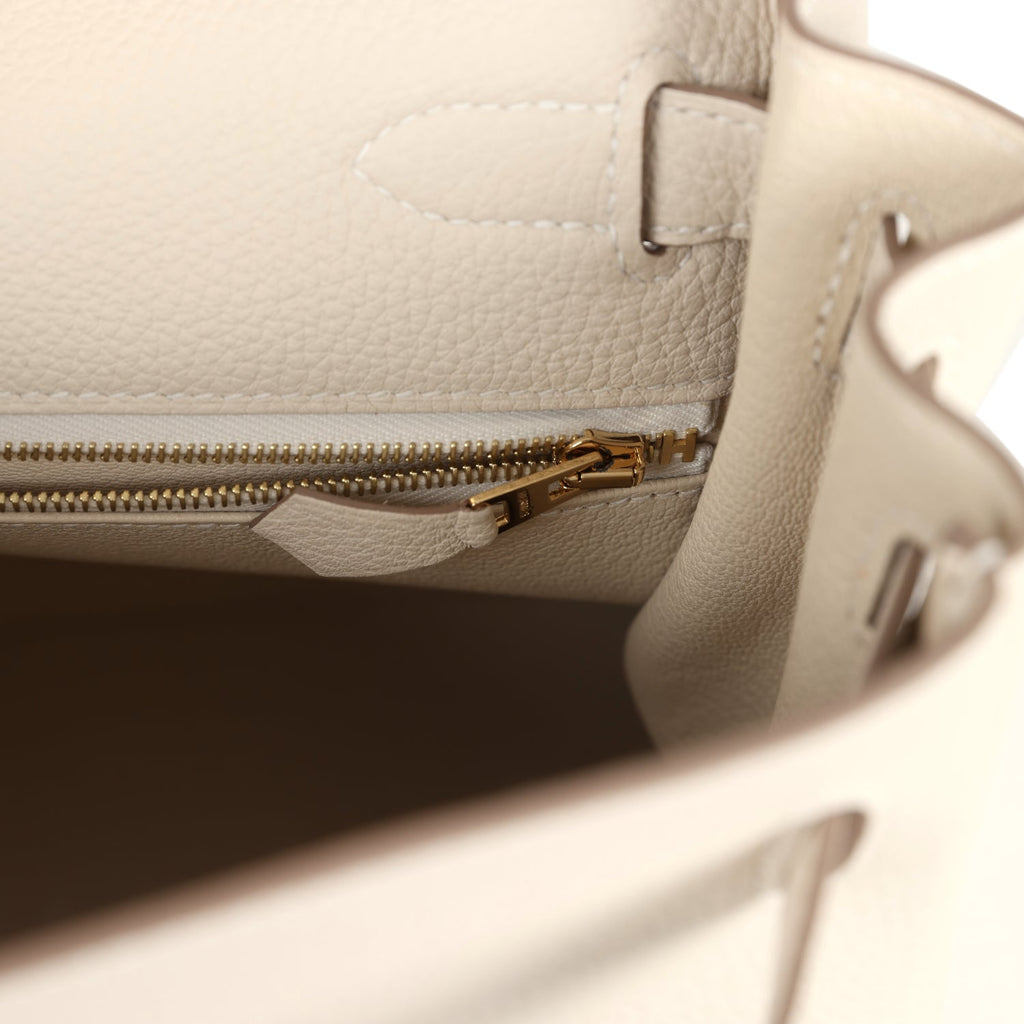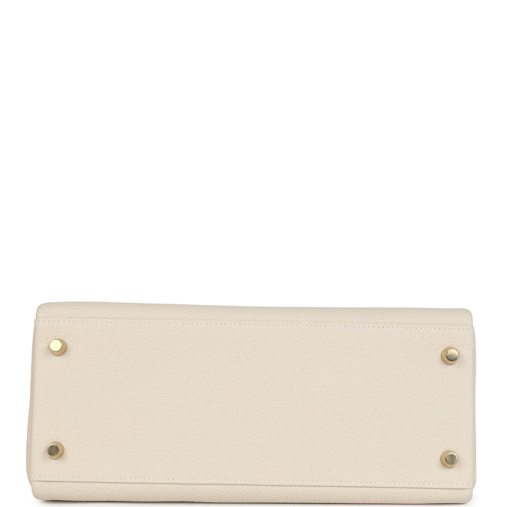 Hermes Kelly Retourne 28 Craie Togo Gold Hardware Shop for an authentic Hermes Kelly Retourne 28 in Craie Togo leather with gold hardware in new and never worn condition at Madison Avenue Couture.