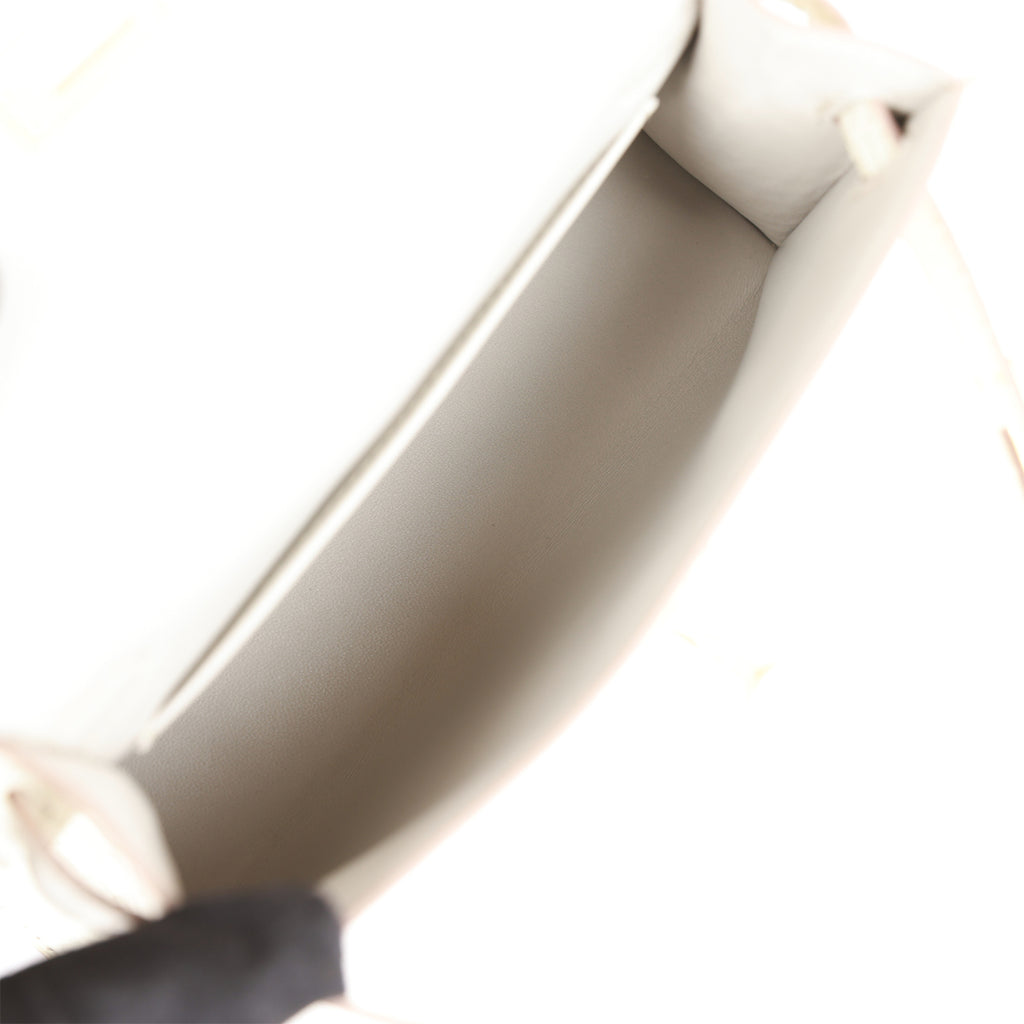 This tiny Kelly, in the Sellier style, is in Beton matte Mississippienis alligator with gold hardware and has tonal stitching, two front straps with front toggle closure, single rolled handle and removable shoulder strap.The interior is lined with Beton leather and has one open pocket on the back wall.Collection: U (2022)Origin: FranceCondition: New and never worn (plastic on hardware)Accompanied by: Hermès box, Hermès dustbag, shoulder strap, shoulder strap dustbag, felt, carebook, CITES and ribbon Measurements: 7.5″ width x 4.5″ height x 2.2″ depth; 2.5″ handle drop, 18.5″ shoulder strap drop
