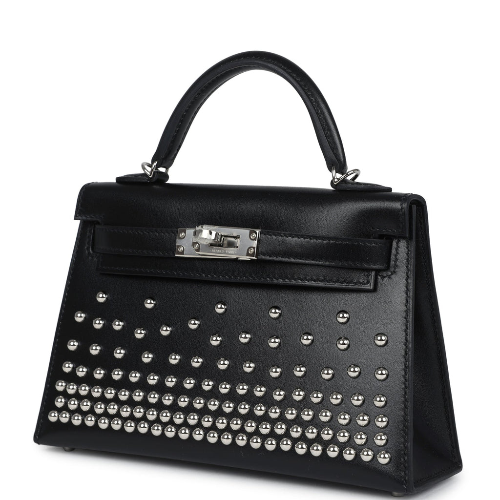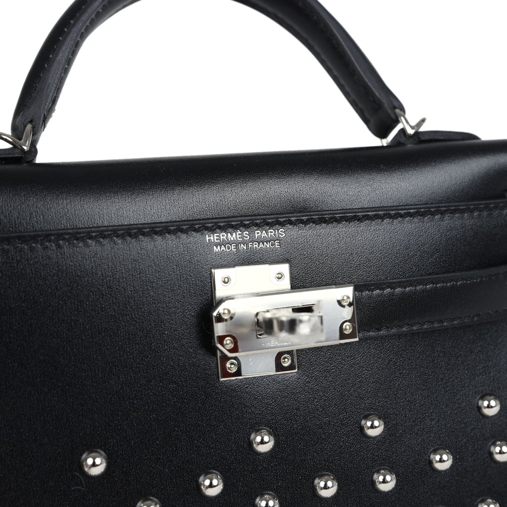 Hermes Kelly Sellier 20 Clouté Black Box Palladium Hardware Shop for an authentic Hermes Kelly Sellier 20 Cloute in Black boxcalf leather with palladium hardware in new and never worn condition at Madison Avenue Couture.