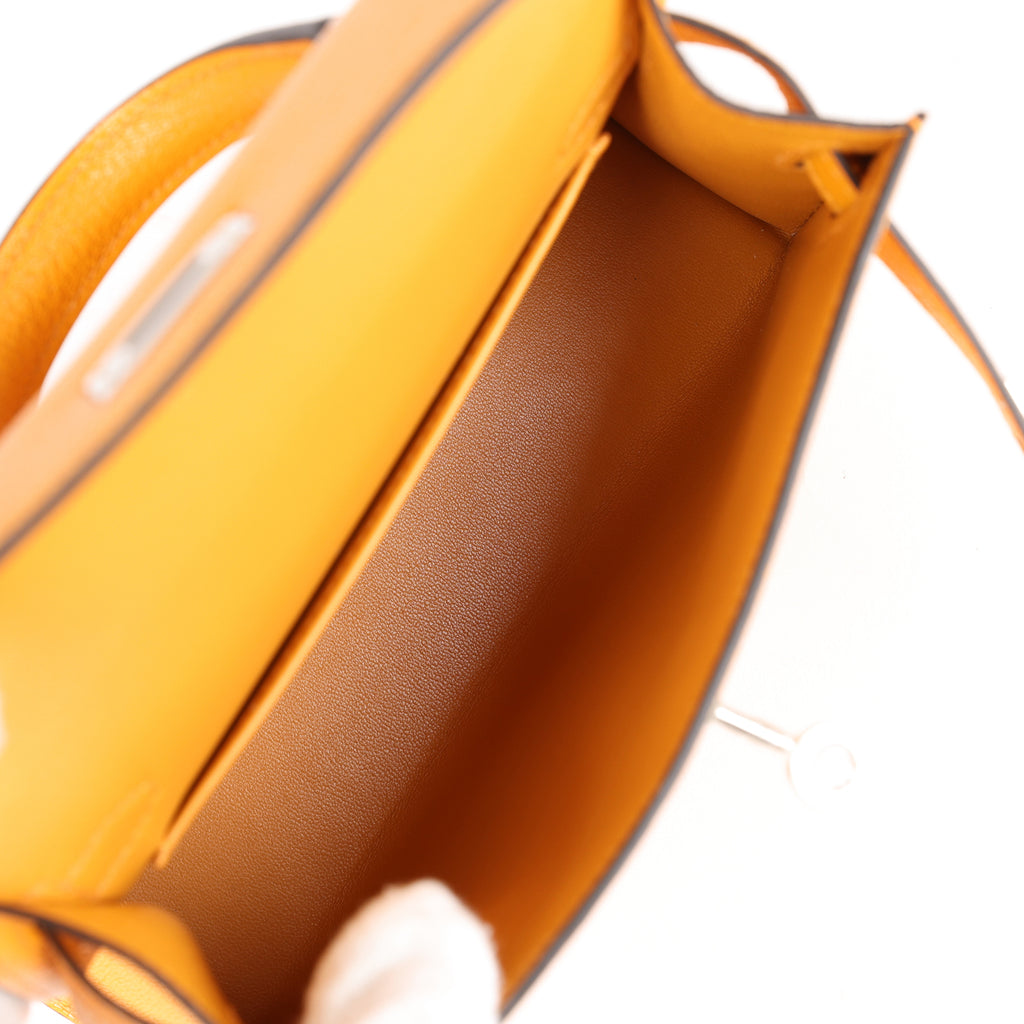 This Kelly, is in Moutarde chevre leather with palladium hardware, has tonal stitching, two straps with front toggle closure, single rolled handle and removable shoulder strap.The interior is lined with Moutarde lambskin leather and has one open pocket on the back wall.Collection: B (2023)Origin: FranceCondition: New and never worn (plastic on hardware) Accompanied by: Hermes box (pre-owned), Hermes dustbag, shoulder strap, shoulder strap dustbag, feltMeasurements: 7.5″ width x 4.5″ height x 2.2″ depth; 2.5″ handle drop (18″ shoulder strap drop)