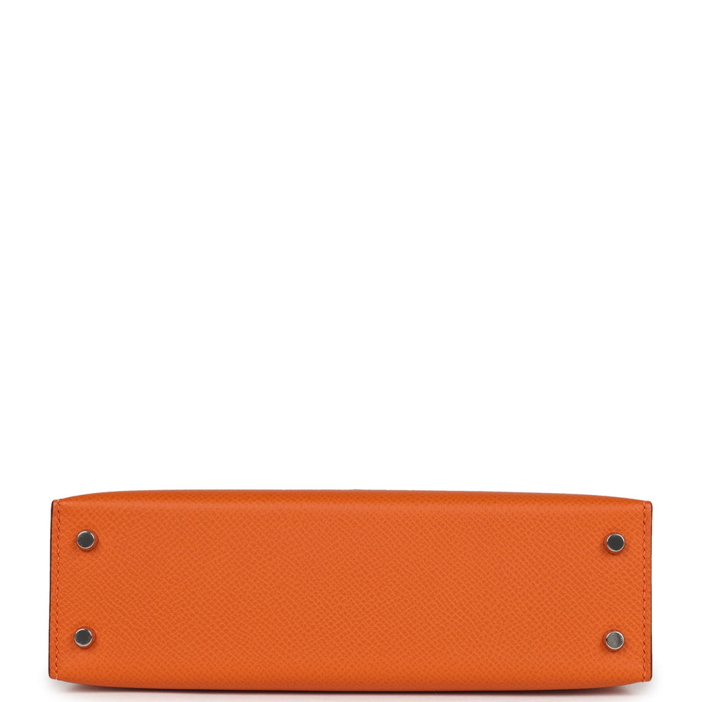 Hermes Kelly Sellier 20 Orange Epsom Palladium Hardware Shop for an authentic Hermes Kelly Sellier 20 in Orange epsom leather with palladium hardware in new and never worn condition at Madison Avenue Couture.