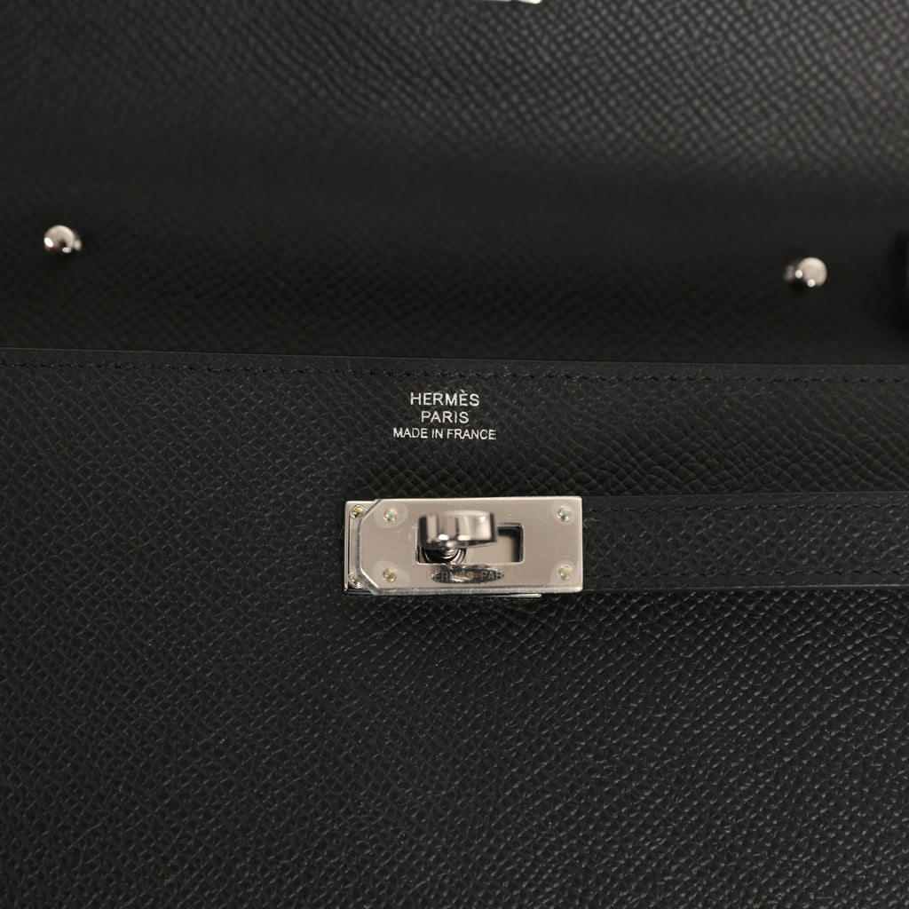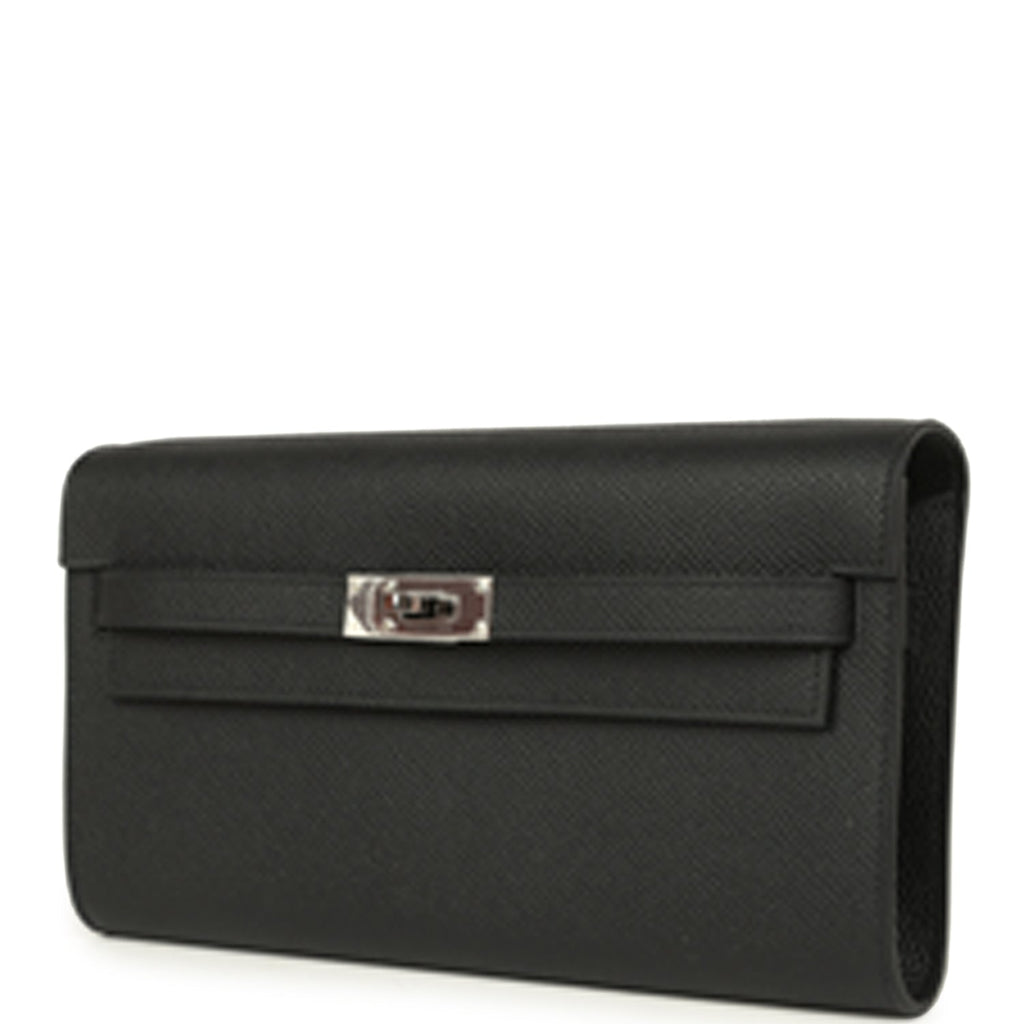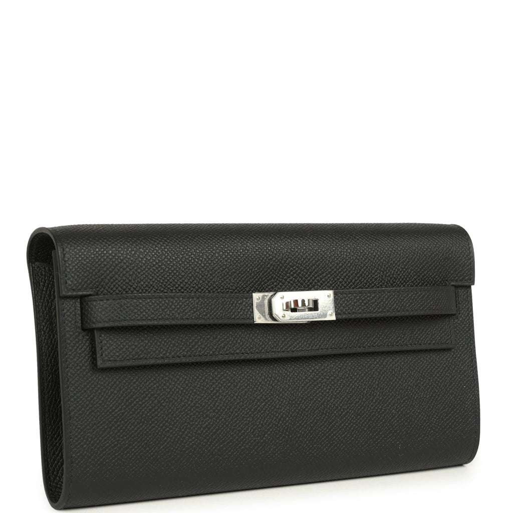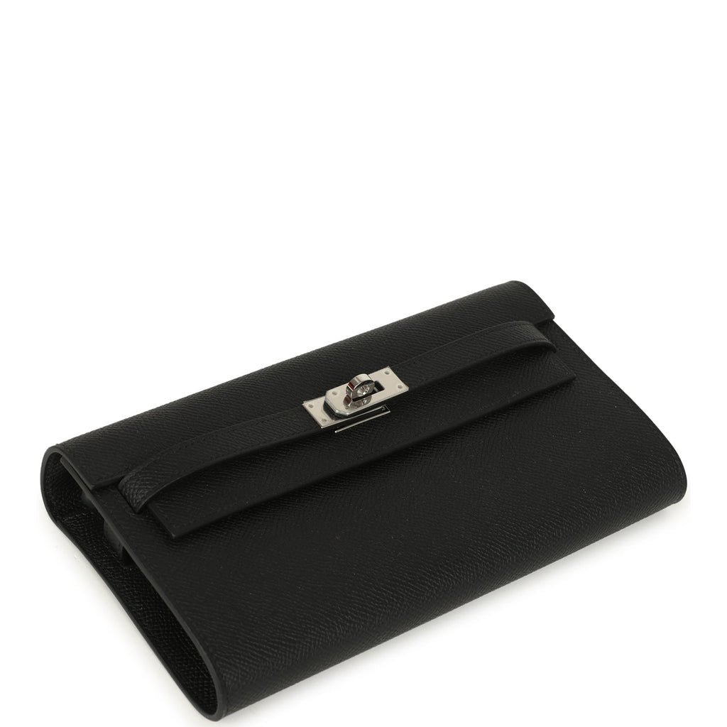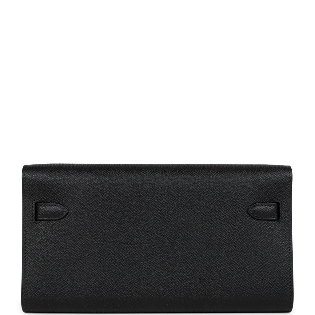 Hermes Kelly Wallet To Go Black Epsom Palladium Hardware Shop for an authentic Hermes Kelly Wallet To Go in Black epsom leather with palladium hardware in new and never worn condition at Madison Avenue Couture.