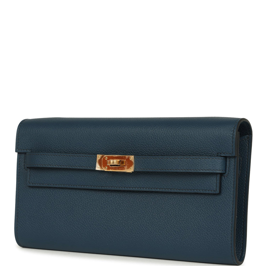 Hermes Kelly Wallet To Go Bleu De Prusse Evercolor Gold Hardware Shop for an authentic Hermes Kelly Wallet To Go in Bleu De Prusse evercolor leather with gold hardware in new and never worn condition at Madison Avenue Couture.