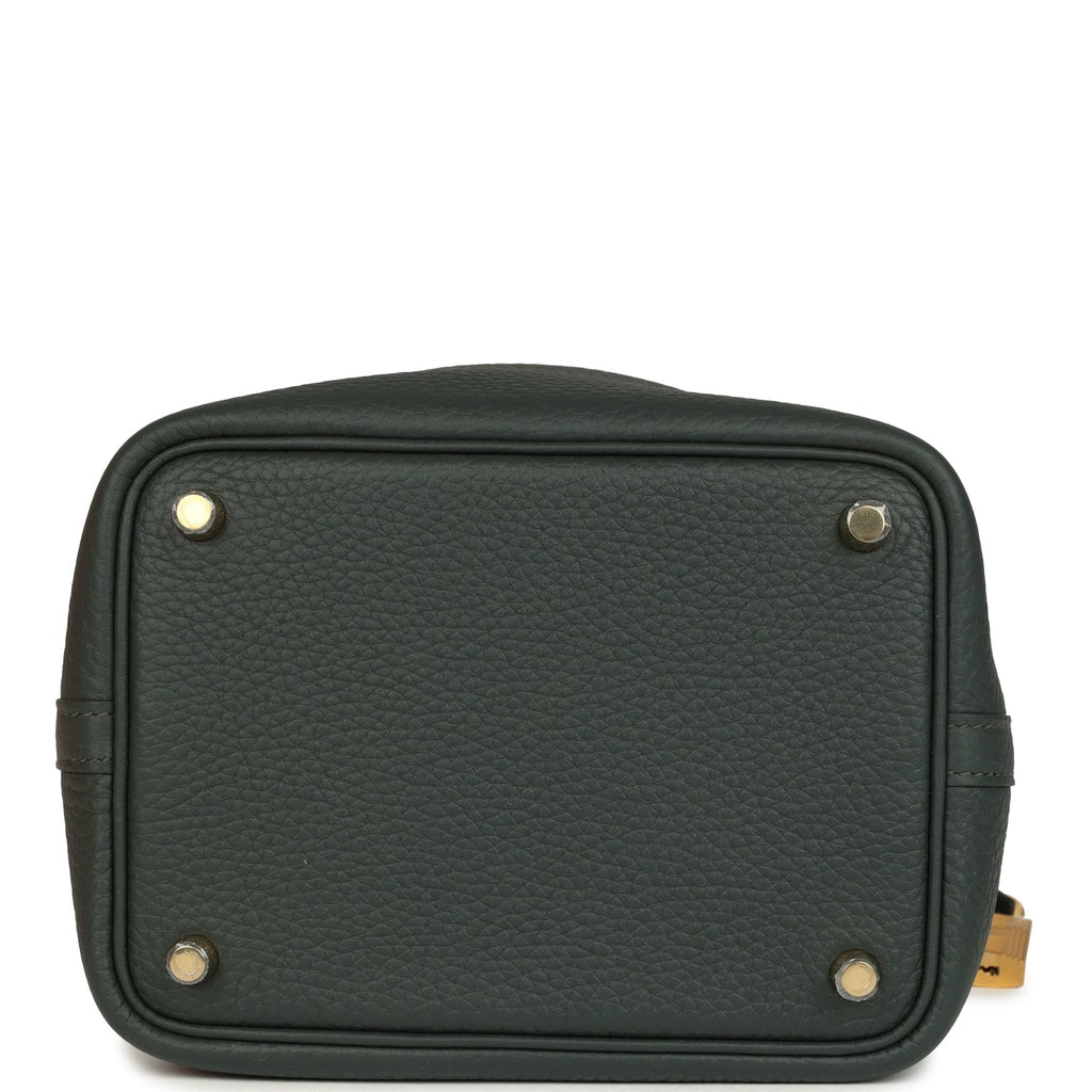 Hermes Picotin Lock 18 Vert Mangrove Clemence Gold Hardware Shop for an authentic Hermes Picotin Lock 18 in Vert Mangrove clemence leather with gold hardware in new and never worn condition at Madison Avenue Couture.