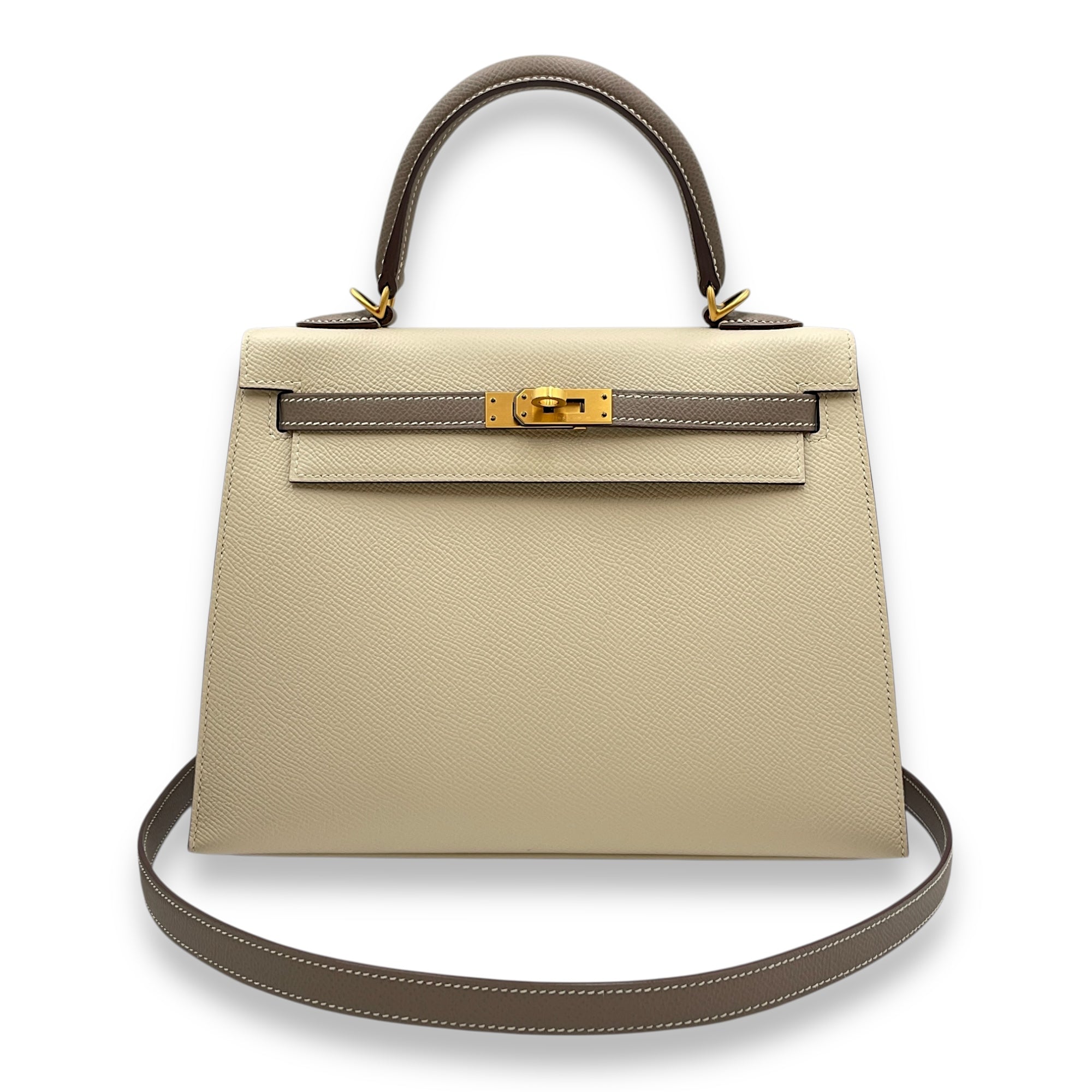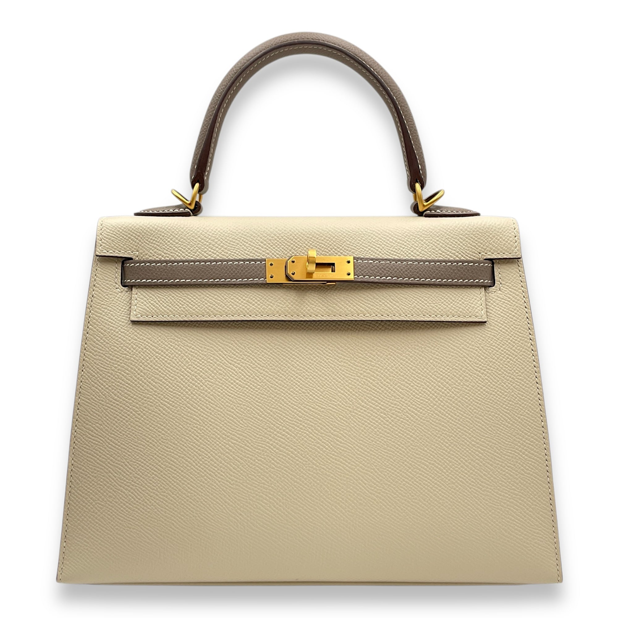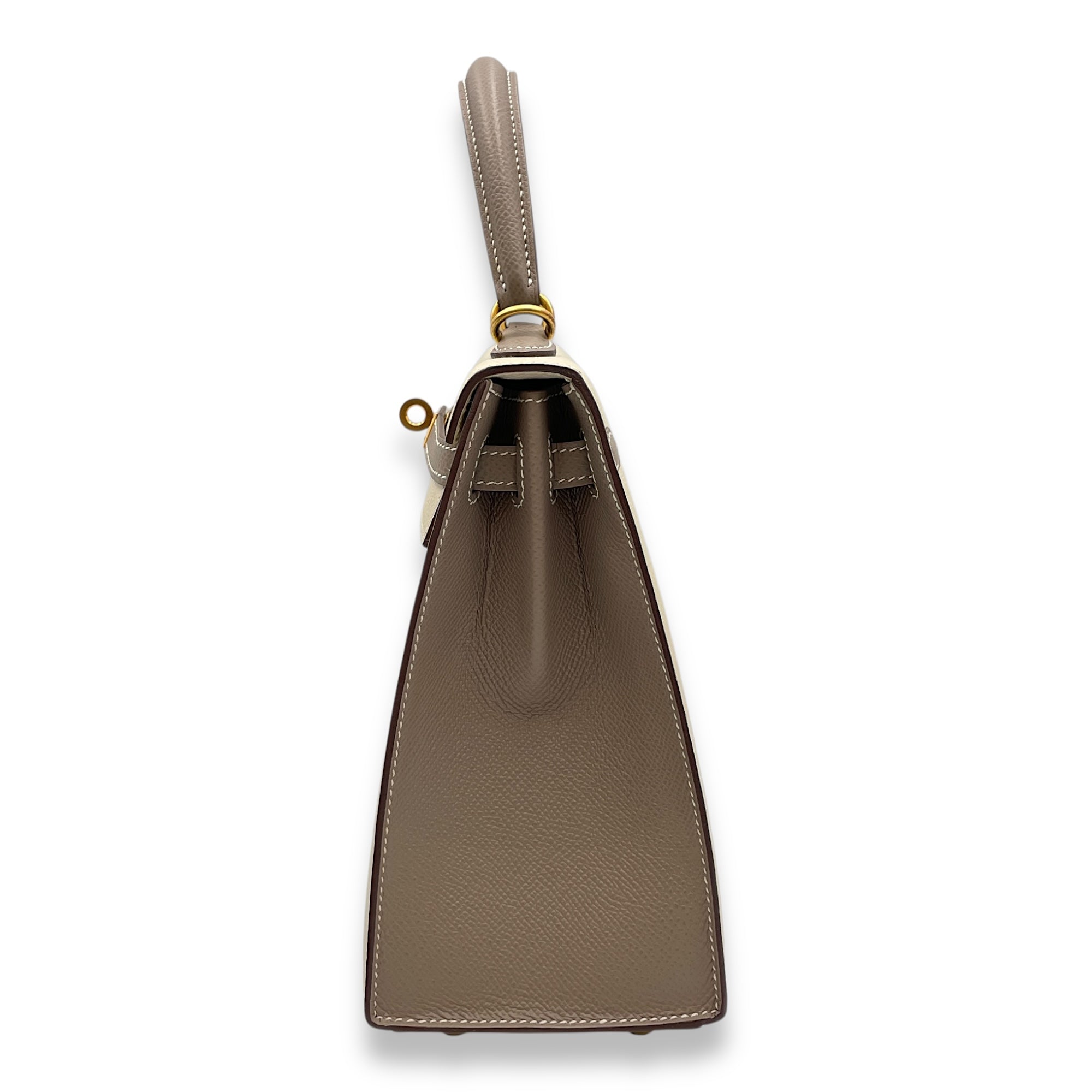 HSS Sellier Kelly 25 Craie/Gris Asphalt in Epsom, Brushed Gold hardware