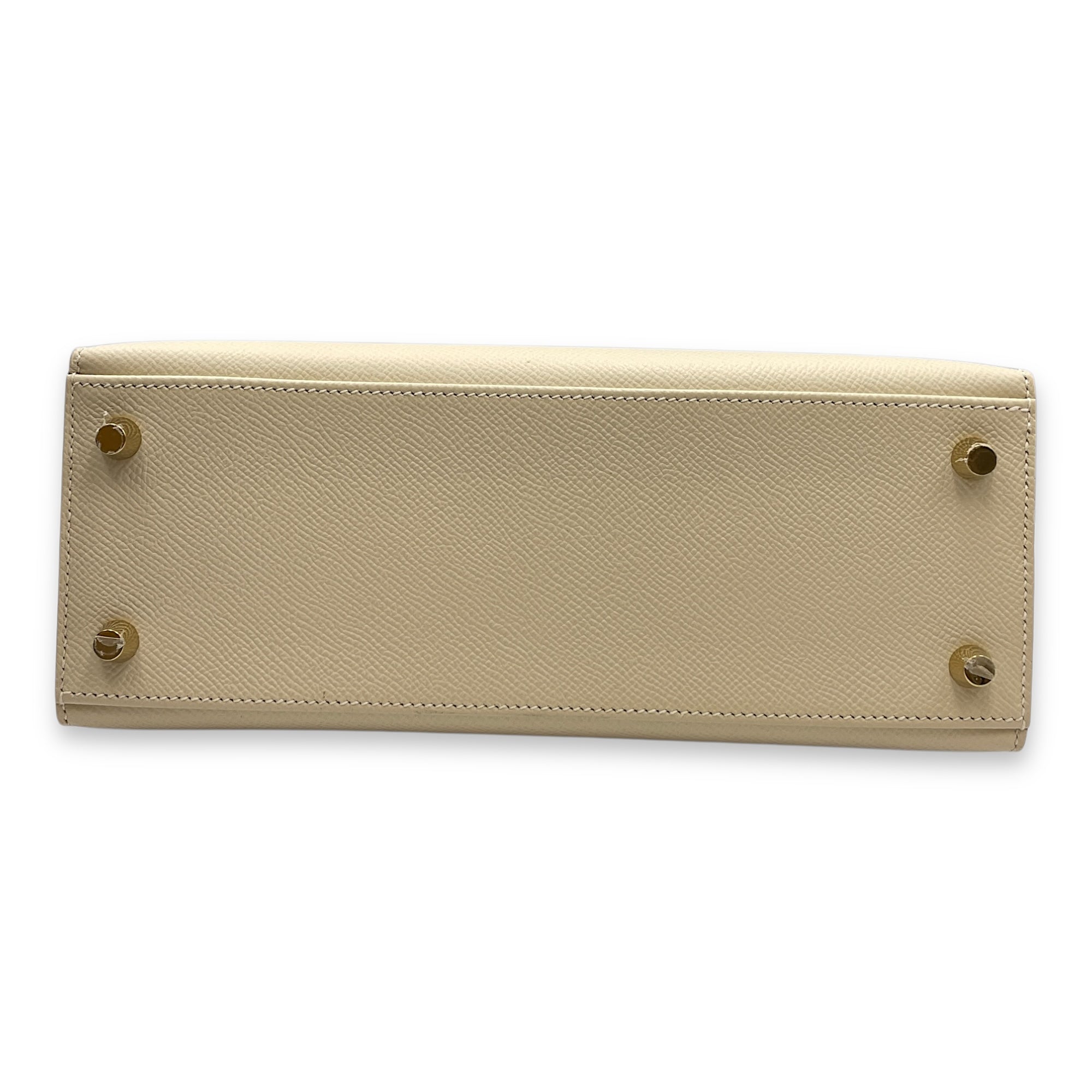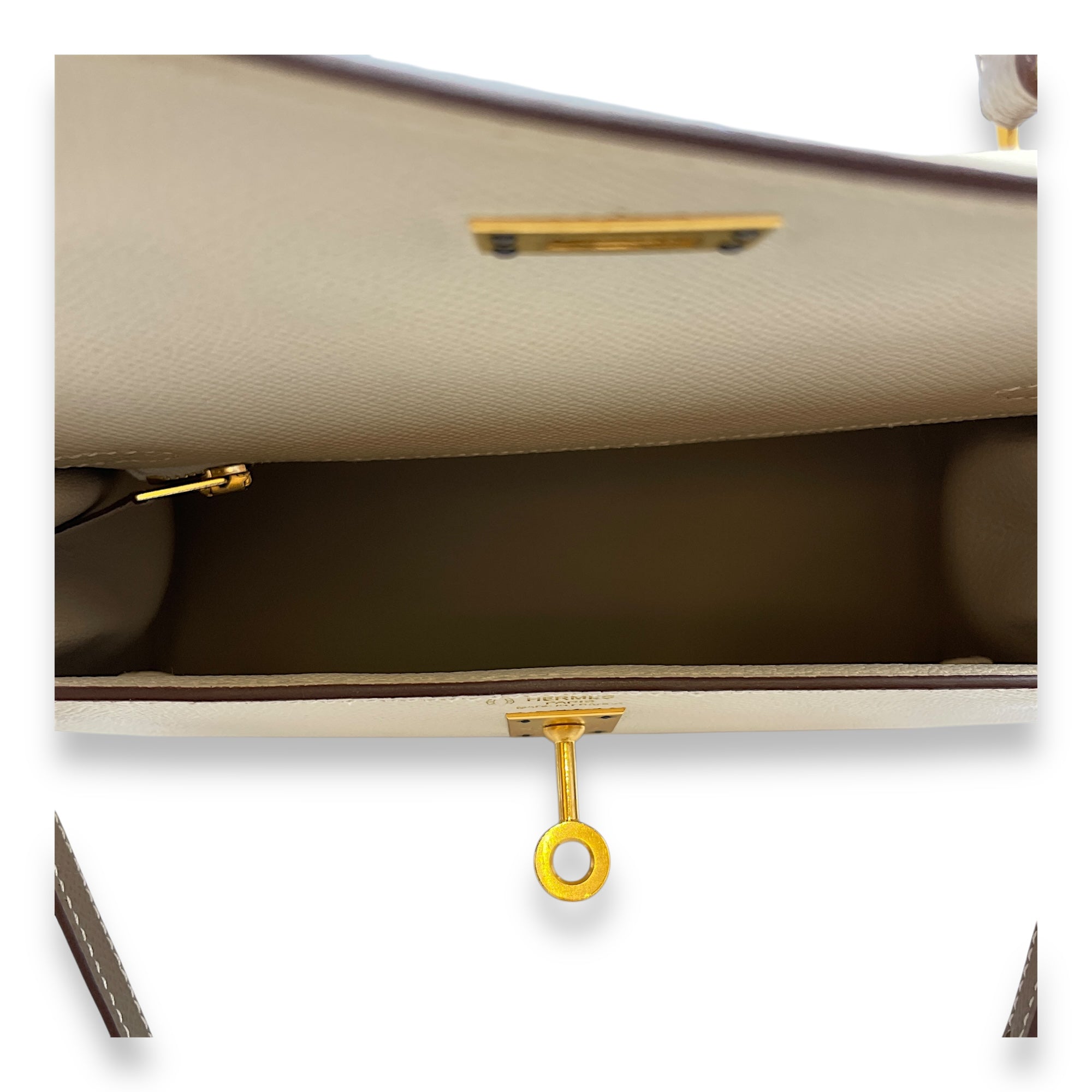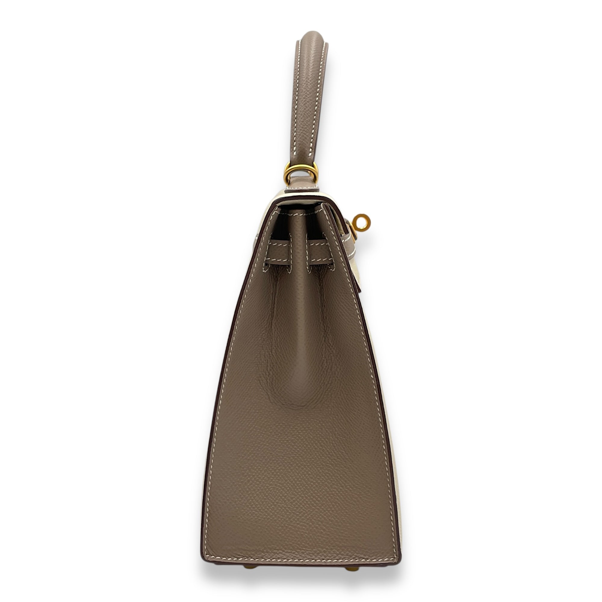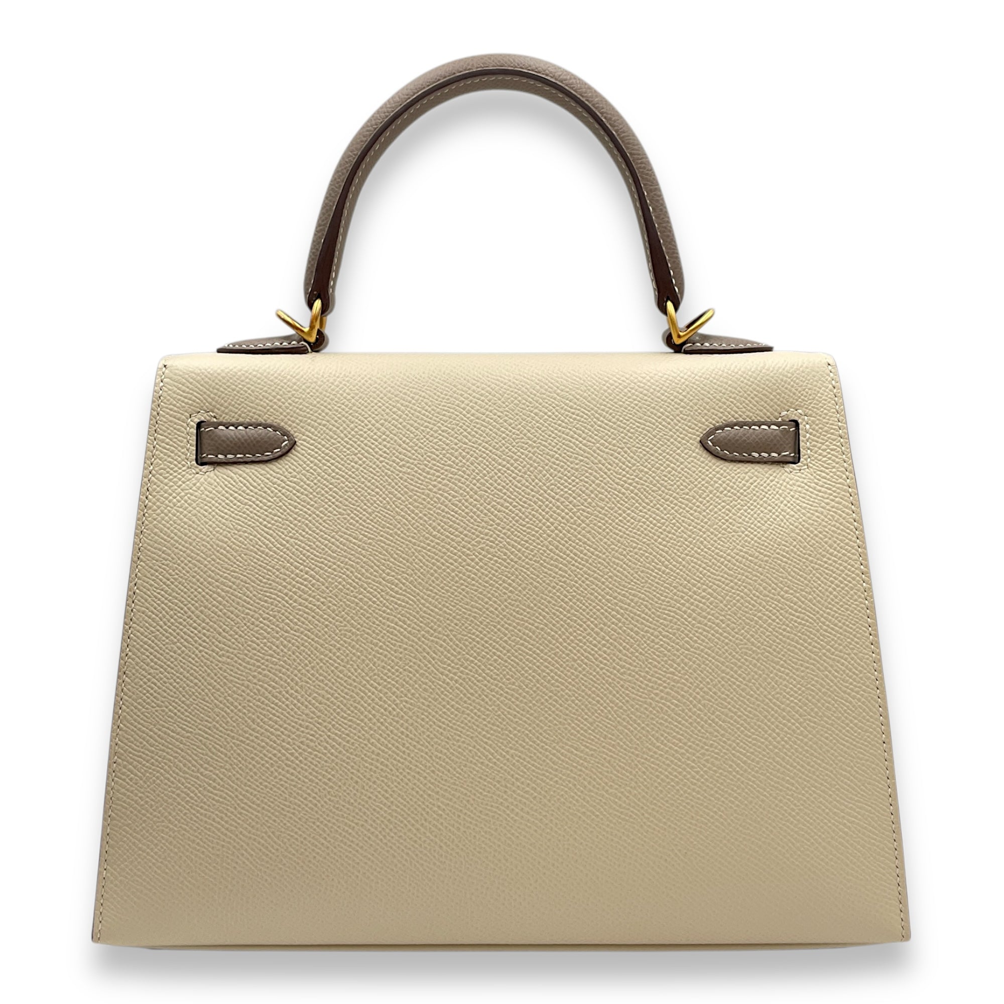 HSS Sellier Kelly 25 Craie/Gris Asphalt in Epsom, Brushed Gold hardware